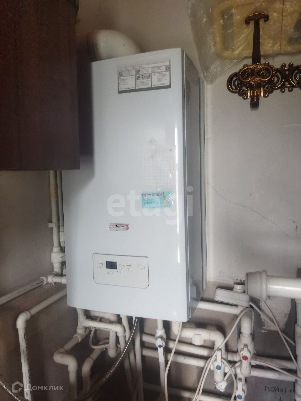 Отопление газовое, газовый двухконтурный котел и дополнительно электрический бойлер.