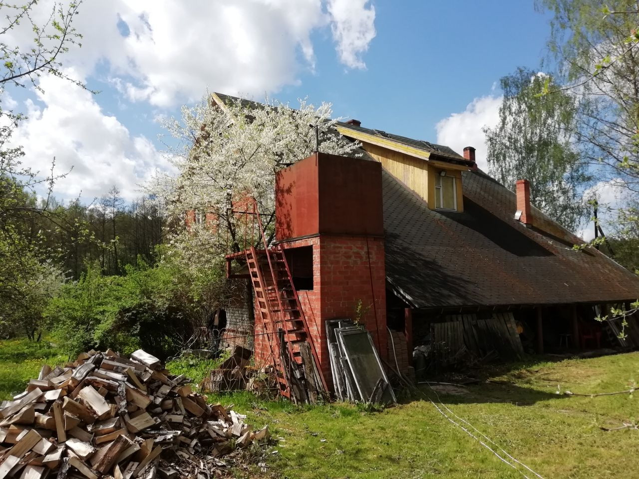 В доме: 2 этажа и мансарда (не отделана), подвал 65м2 (высота 2,5 м), навес для хозяйственных нужд.