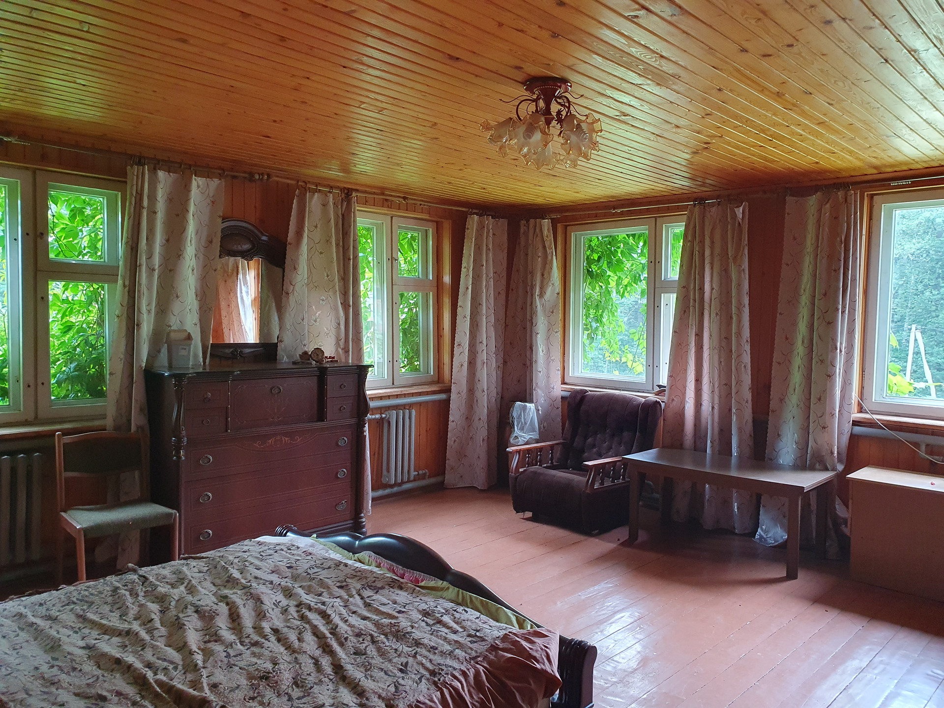 Участок угловой с двух сторон окружен лесом. Лес так же есть на территории участка.