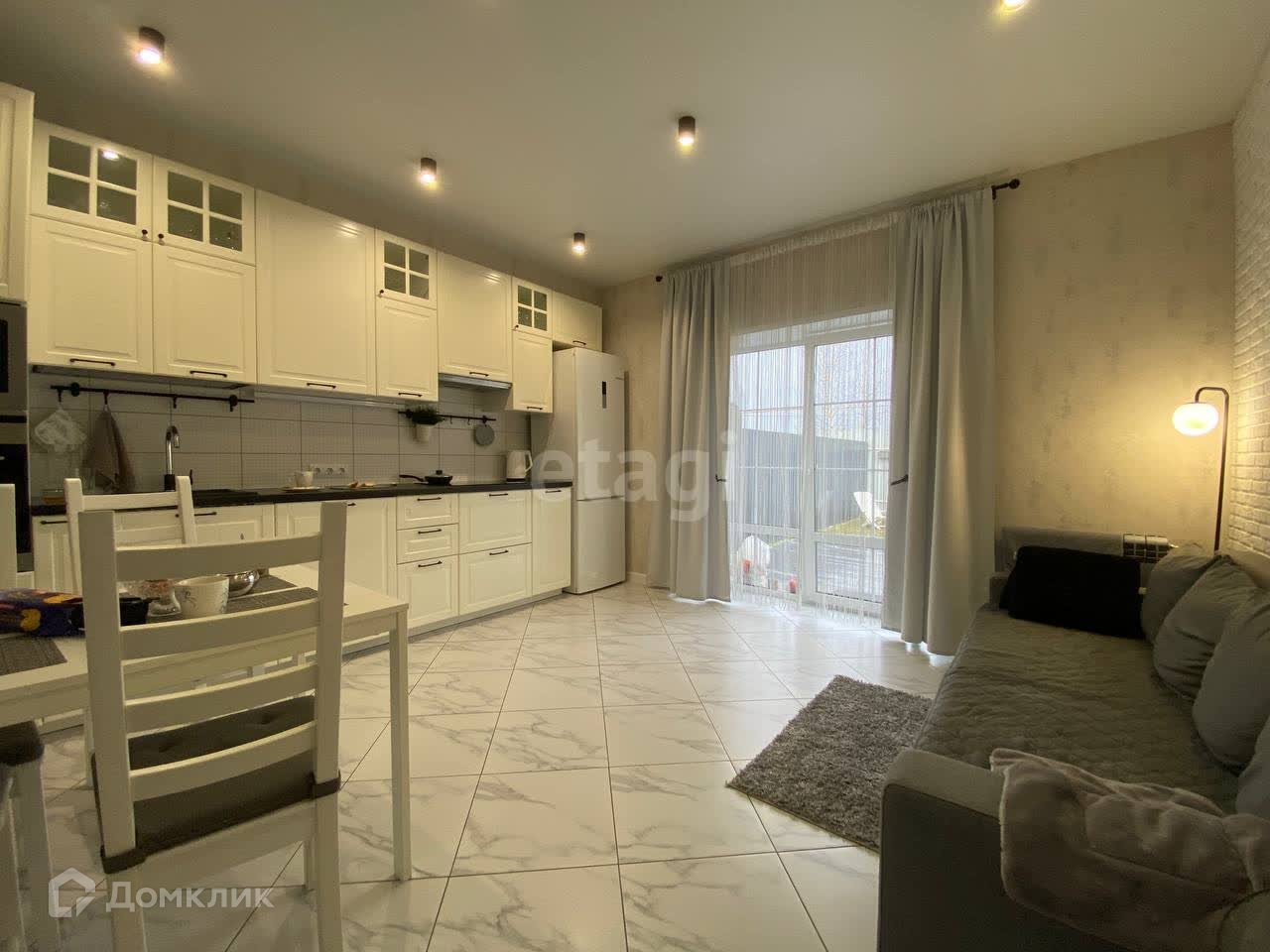 Сердце дома это кухня гостиная, полностью укомплектованная с панорамными окнами и выходом во внутренний двор и террасу.