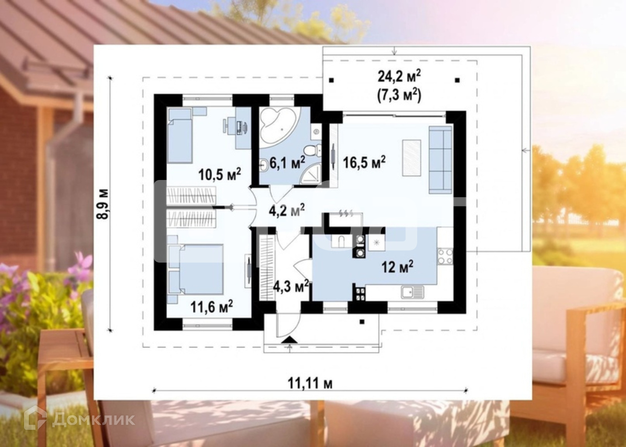 Общая площадь 72,5 м2