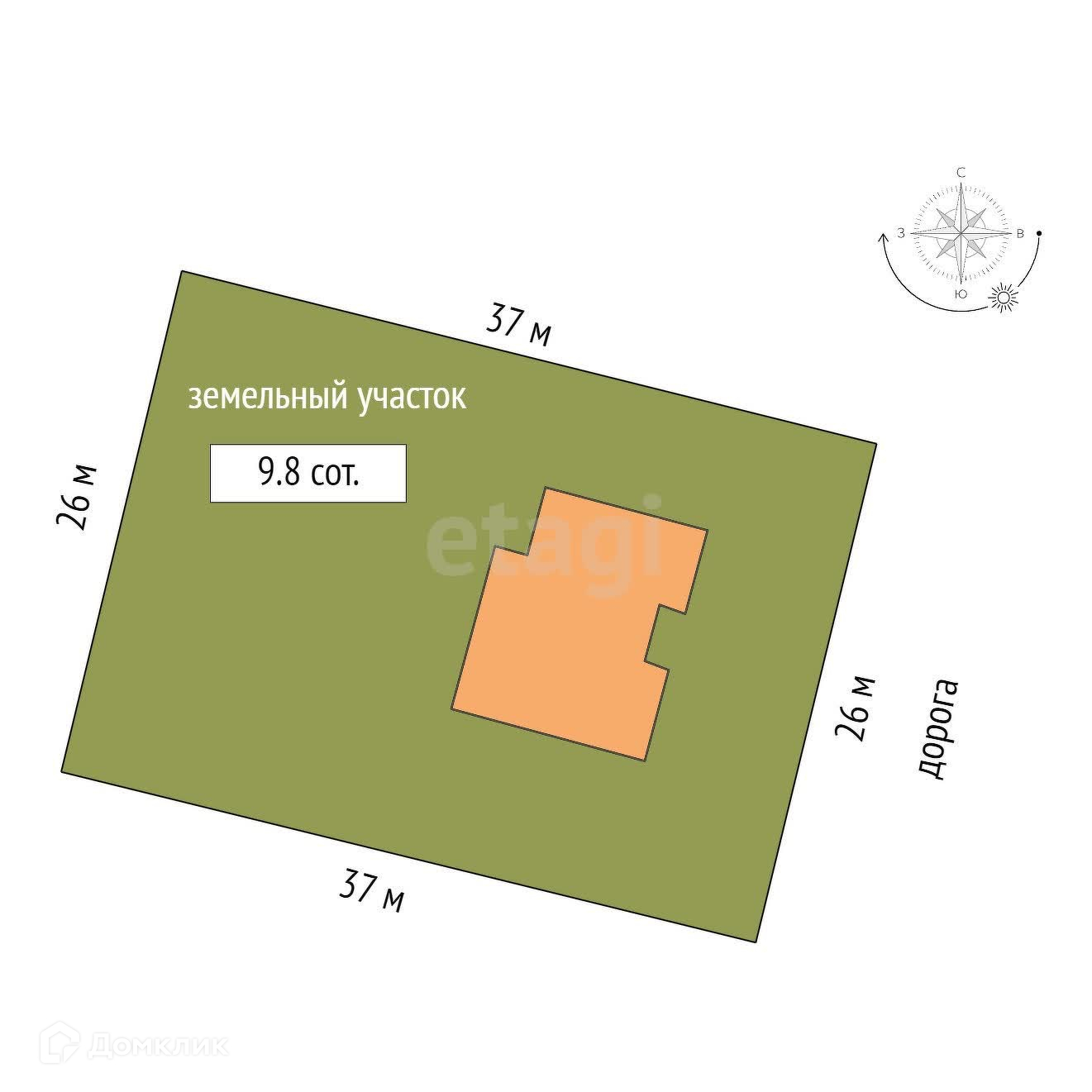 Площадь участка 9.8 сот.