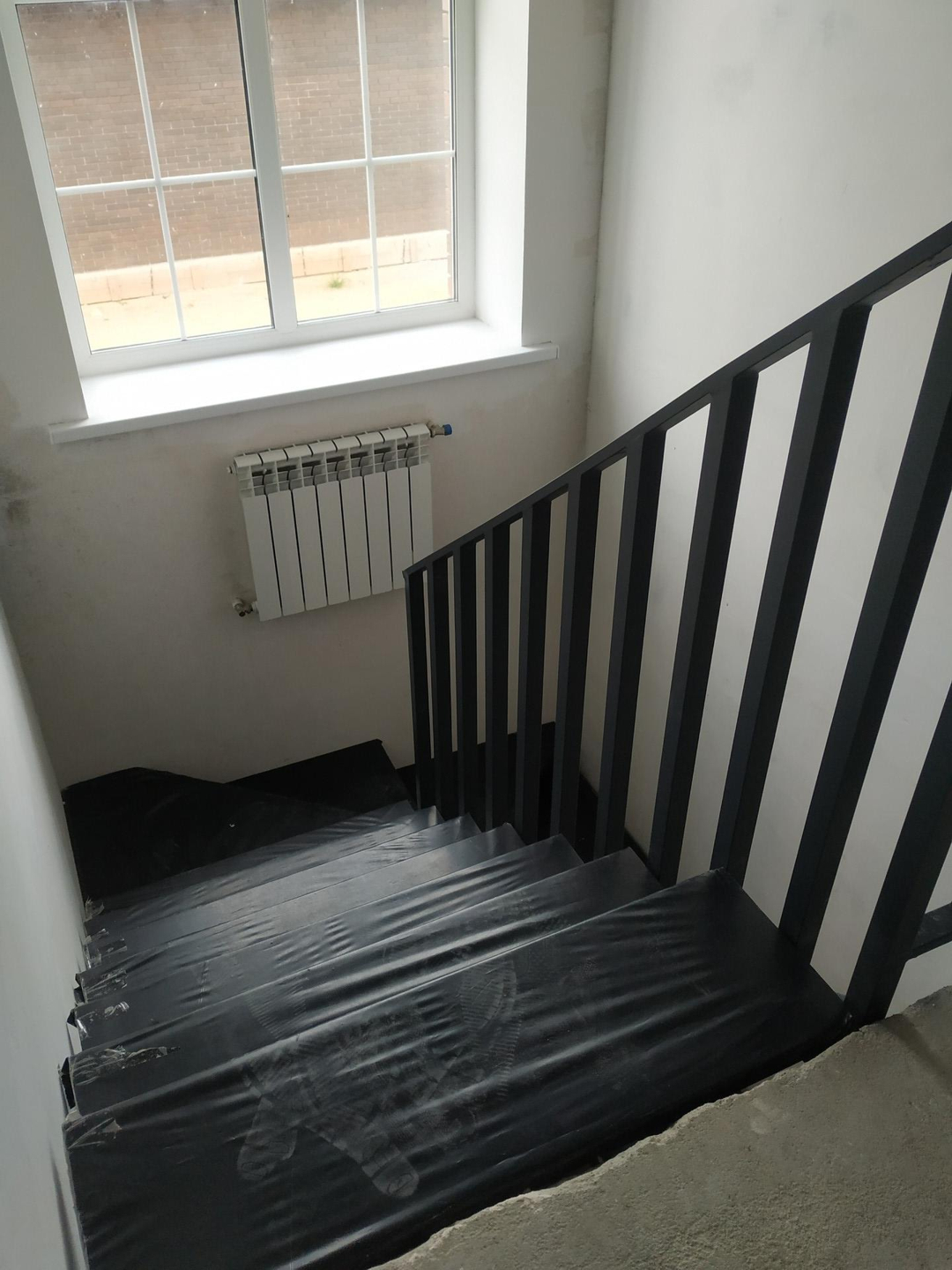 Металлическая лестница с деревянными ступенями.