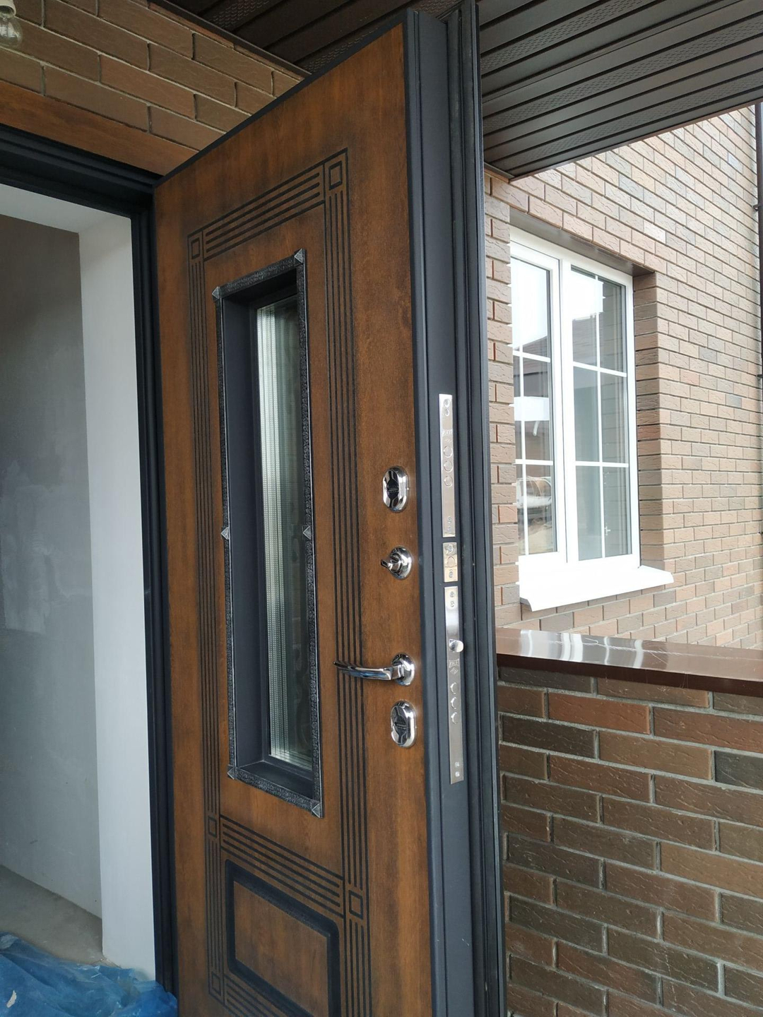 Качественная входная дверь со стеклопакетом и терморазрывом.