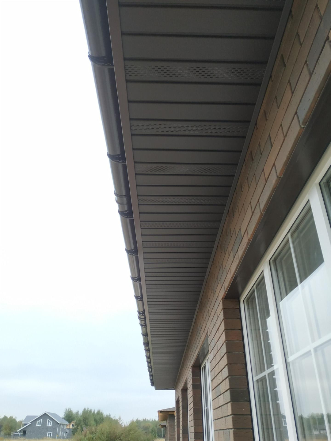 Кровля - мягкая черепица с водосточной системой. Отмостка по периметру дома.