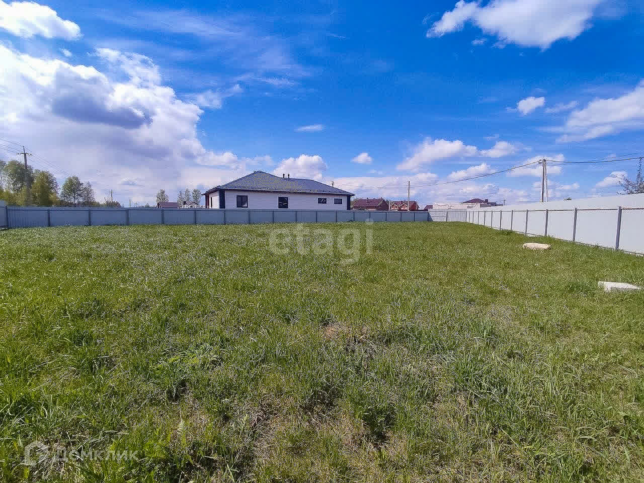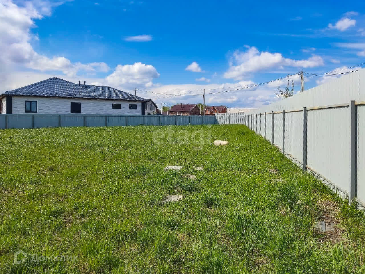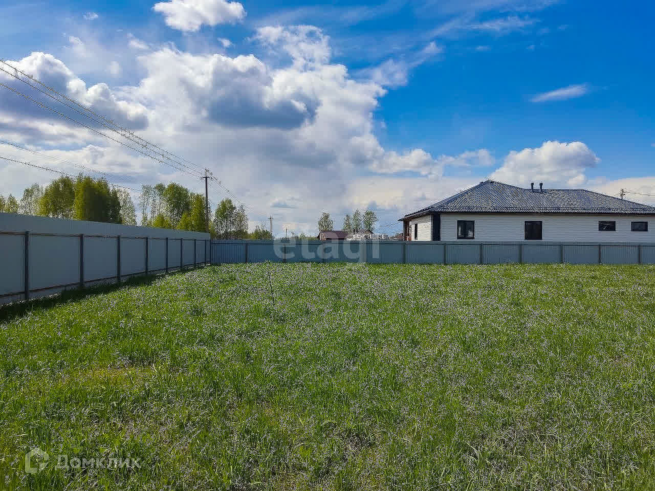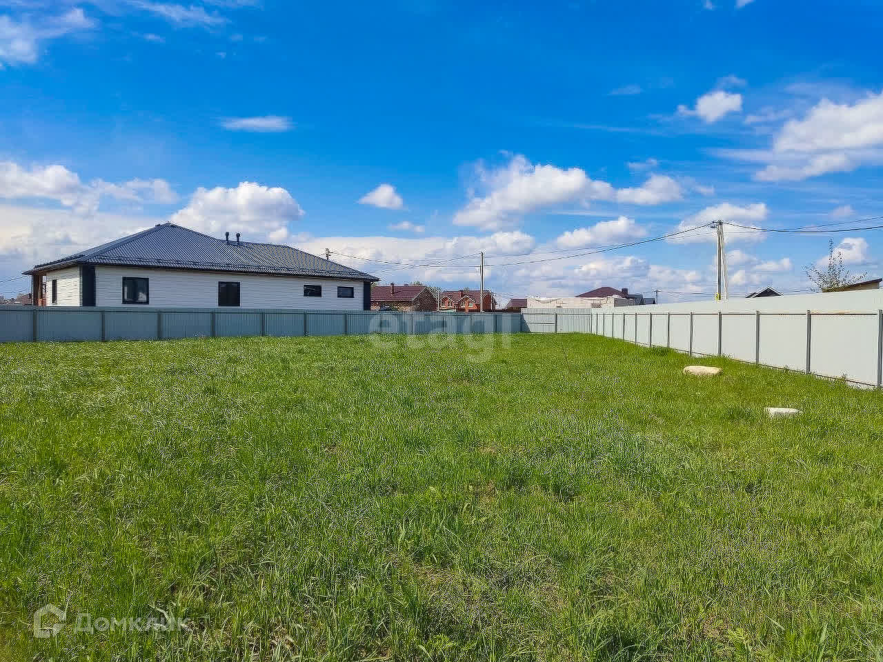 Участок ровный, сухой, огорожен забором из профнастила, высота 2,2м. Установлен столб со счетчиком (договор на потребление электроэнергии заключен), получено разрешение на подключение газа и разрешение на строительство дома.
