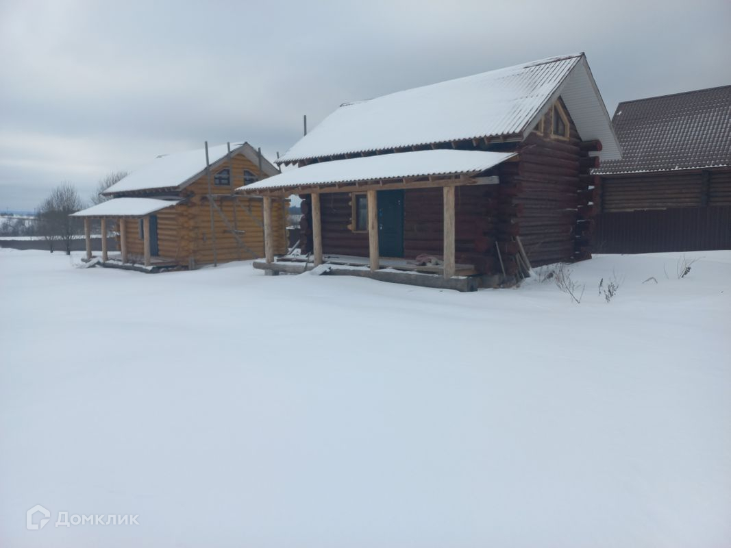 Дома построены в 2021-2022 гг. из бревна на ленточном фундаменте, кровля-ондулин, окна пвх. В  строения заведено электричество, на участке скважина глубиной 86 метров, около каждого дома септики. По границе участка магистральный газ.