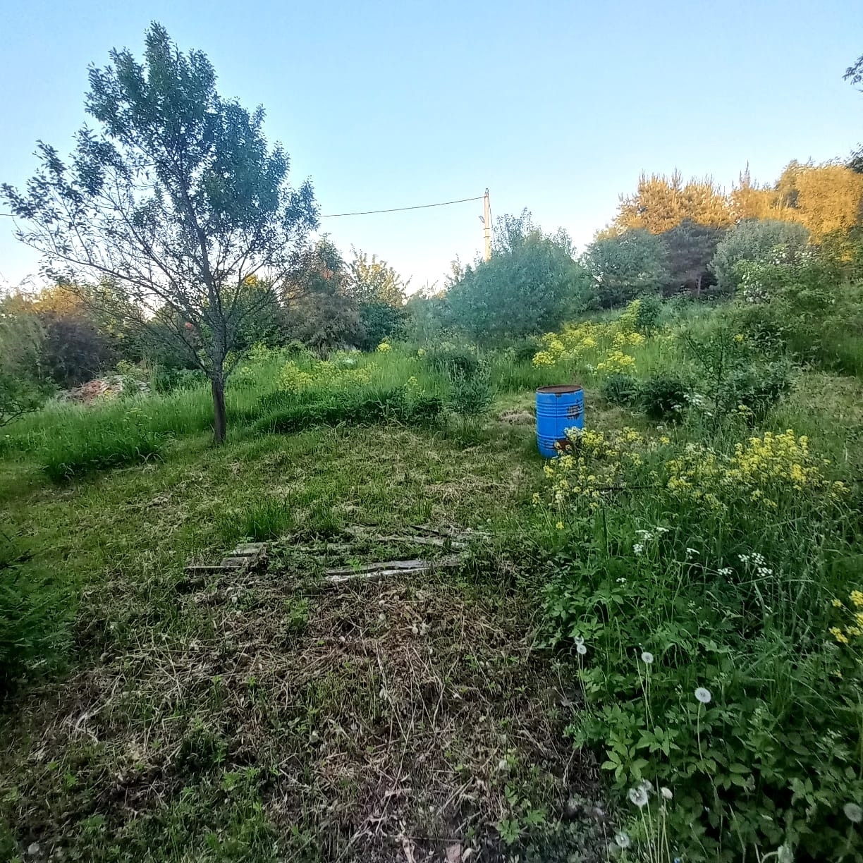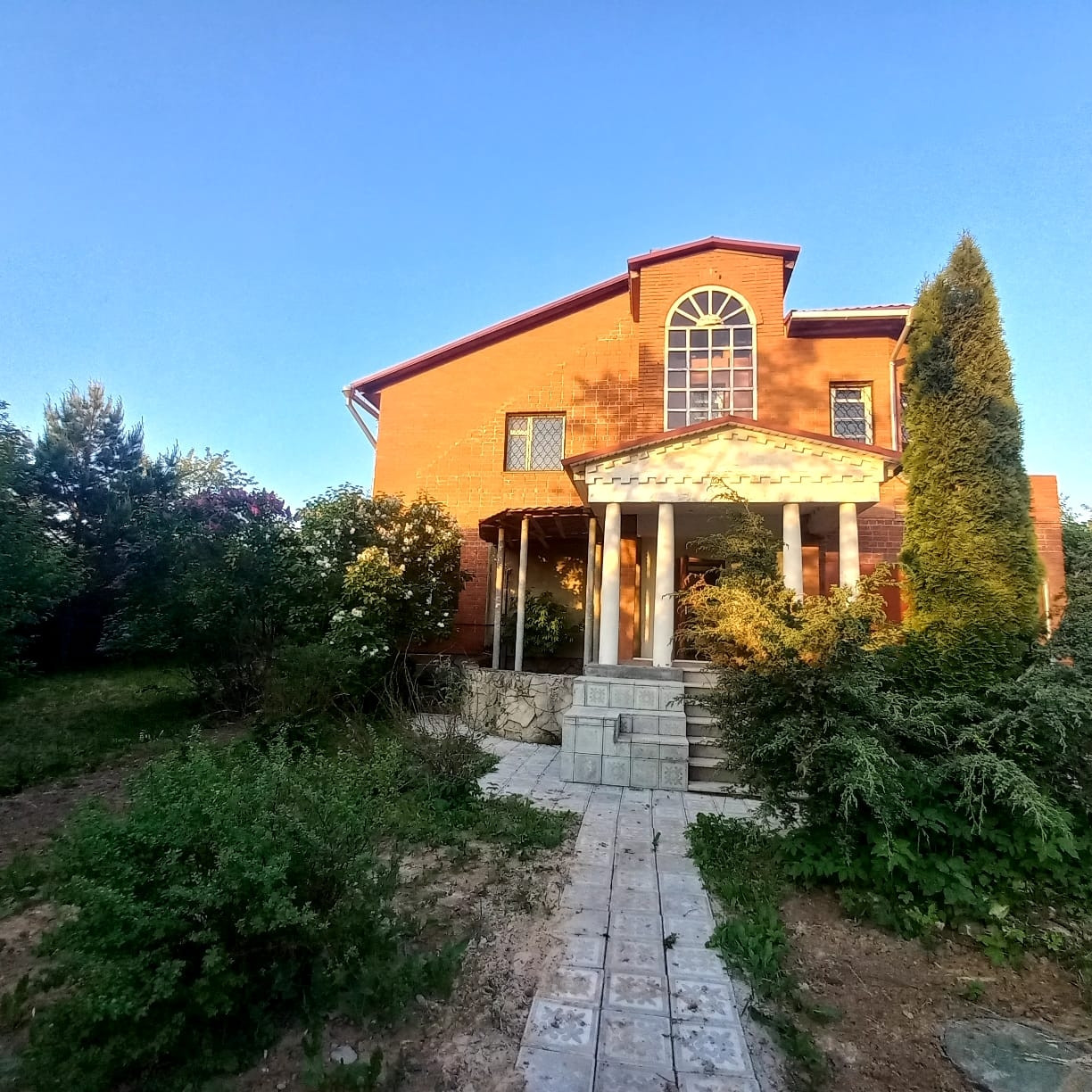 Участок по периметру огорожен ,  кирпичные столбы с профнастилом , частично сетка рабица . Участок ухоженный с множеством плодовых и других деревьев .