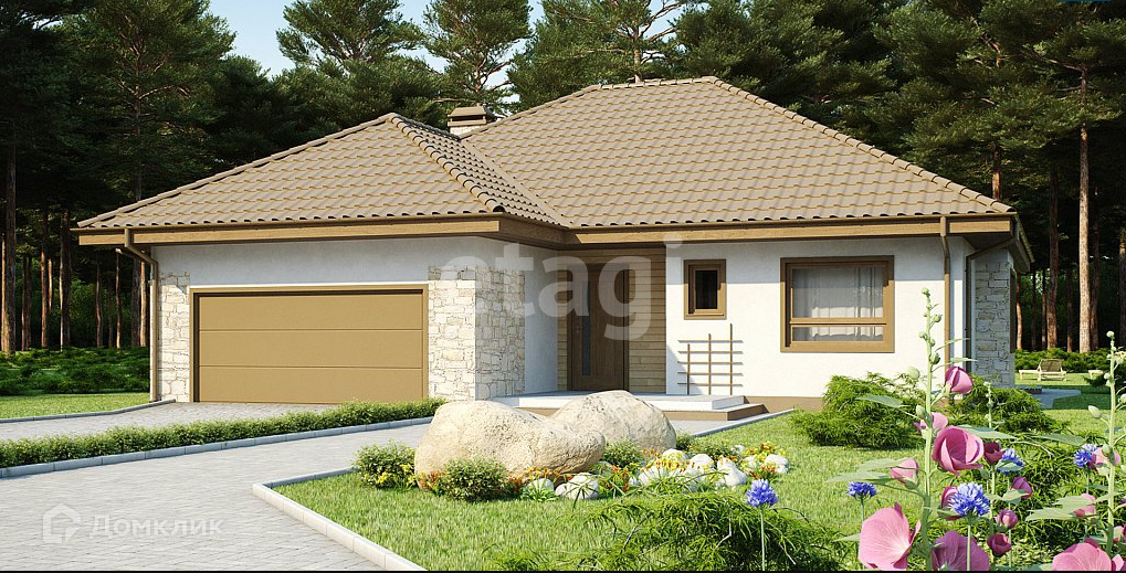 Дом построен из керамических блоков. Проект KST-19 — это одноэтажный удобный дом с фронтальным гаражом для двух автомобилей. Конструкция крыши дает возможность обустроить мансарду по мере необходимости, что делает дом выгодным и практически универсальным. Преимущества проекта KST-19: