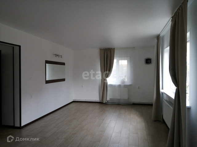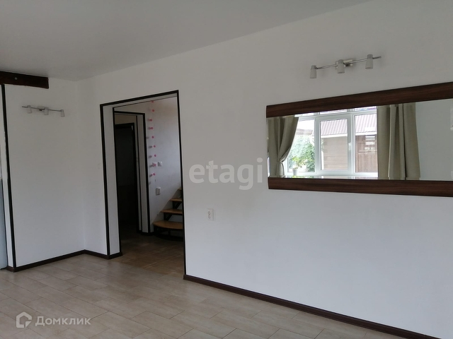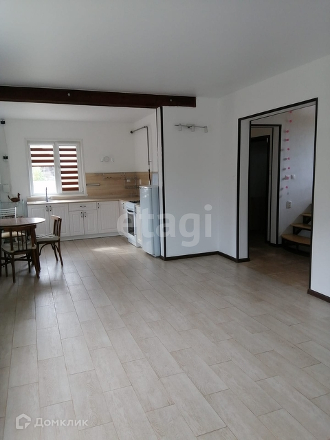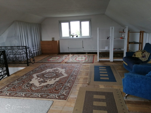 В доме установлены пластиковые окна, натяжные потолки, по всему первому этажу тёплый пол. На 1 этаже – раздельный санузел, коридор, спальня (11 м²), гостиная (22 м²), переходящая в кухонную зону (10 м²). Удобная железная лестница ведёт на 2 этаж, где располагается просторная комната (60 м²).
