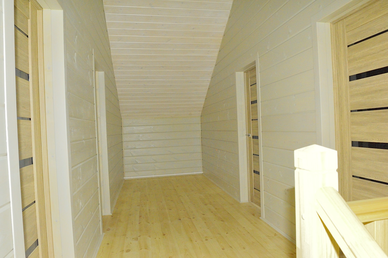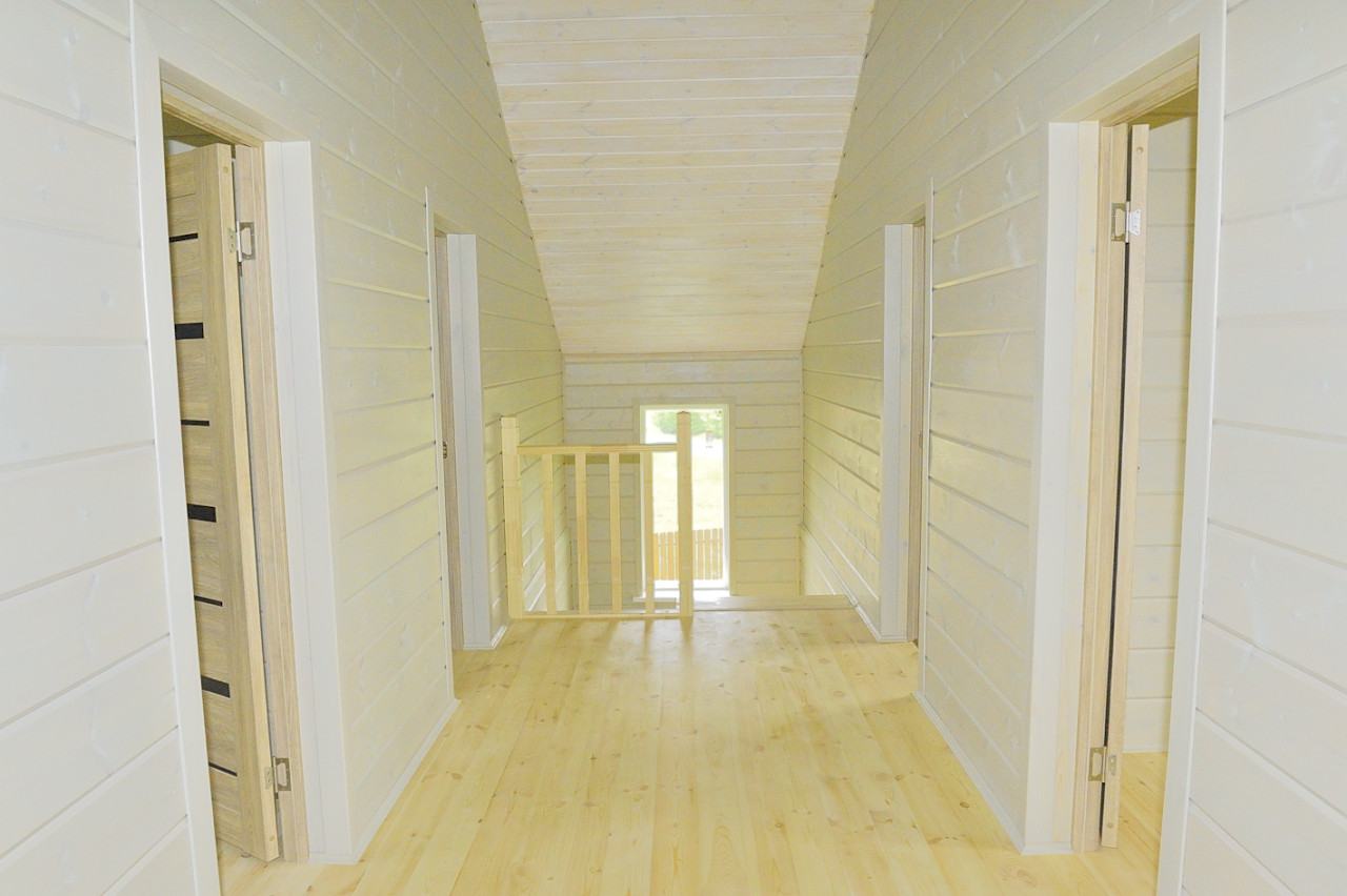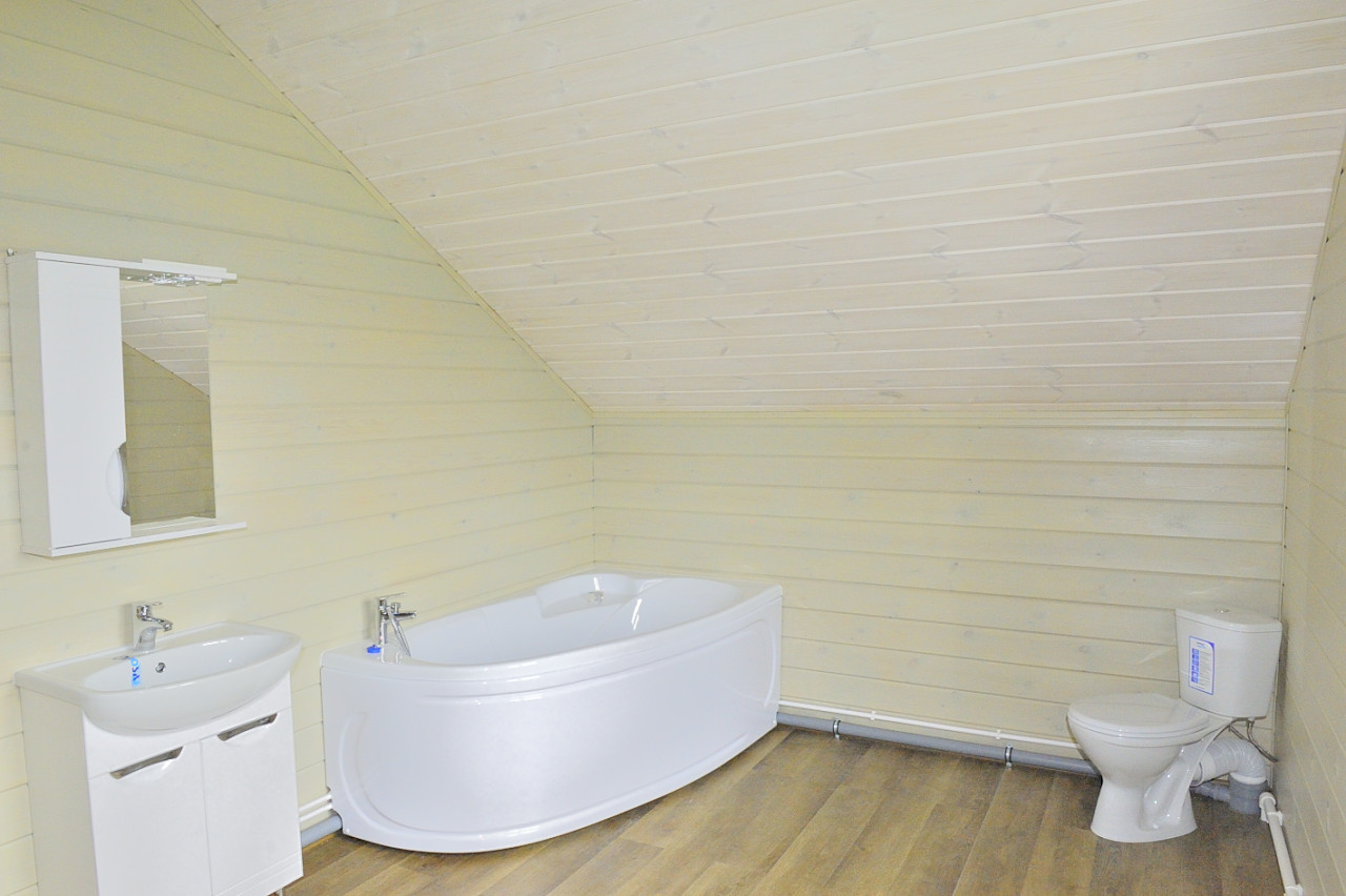 Продается новый коттедж 170 кв.м. на участке 17 соток граничащих с лесным массивом, в 500 метрах от озера, в жилом газифицированном коттеджном посёлке со статусом для ПМЖ, в 80 км от МКАД по Киевскому шоссе. Вблизи находятся такие населенные пункты: деревня Спас-Прогнанье, деревня Машково, деревня Алопово, село совхоз Победа, деревня Воробьи и город Балабаново. Дом общей площадью 170 кв.м., жилой 150 кв.м. полностью, до конька, построен из соснового бруса сечением 150х150мм (общая толщина стены около 30 см), подготовленный для зимнего проживания, со всеми работающими коммуникациями. Фундамент монолитная, железобетонная плита, межэтажные перекрытия брус 100х200, внутренняя и внешняя отделка стен имитацией бруса из сосны, далее снаружи и внутри дом окрашен дорогими импортными гипоаллергенными красками. Напольное покрытие первого этажа - плитка, второго этажа – качественная сосновая шпунтованная доска, окна - пластиковые поворотно-откидные стеклопакеты, хорошие межкомнатные двери с ручками, кровля металлочерепица. К дому подведены, разведены по точкам потребления и оплачены центральные коммуникации: магистральный газ, установлен двухконтурный газовый котел, смонтирована система отопления, по всему первому этажу разведен контур теплого пола и подоконные радиаторы под каждым окном, водоснабжение - центральное, через систему собственной поселковой фильтрации, электричество 8 кВт, наружная разводка в коробах, канализация - биосептик Топас Россия, есть возможность в подключении к сети интернет. Первый этаж: терраса, прихожая, санузел, котельная, спальня, далее холл с лестницей на второй этаж, кухонная зона, переходящая в гостиную. Второй этаж: три спальни, и санузел. В санузлах установлены раковина, унитаз, душевая кабина и ванна. При строительстве дома использованы качественные отделочные материалы. Участок огорожен, отмостка вокруг дома и парковка забетонированы, установлены въездные ворота и калитка. Дом сдаётся полностью готовым под ключ, все убрано и готово к въезду. Круглогодичный асфальтированный подъезд до и по поселку. Лес виден прямо из окна, церковь, родник, купель, ресторан тайской кухни и большое озеро 500 метров. В пятнадцати минутах ходьбы, 1000 метров прямой видимости, школа, в деревне ходит школьный автобус. 10-12 минут на машине до Балабаново, где есть: ж/д вокзал, рынок, магазины, рестораны, в общем, вся инфраструктура и все, что нужно для жизни. Также до поселка можно добраться и общественным транспортом, ходит рейсовый автобус.