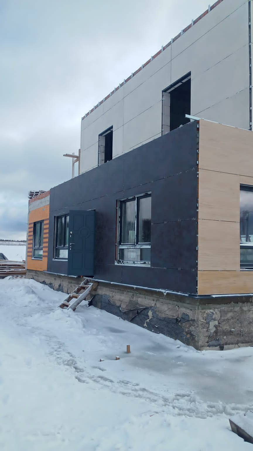 Отдельного внимания заслуживает внешняя отделка фасада- это вентилируемый фасад из люксового итальянского Керамогранита LAMINAM. Пластины 3 м. Самый модный и красивый материал.