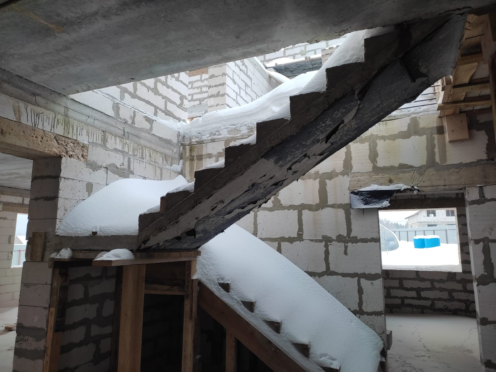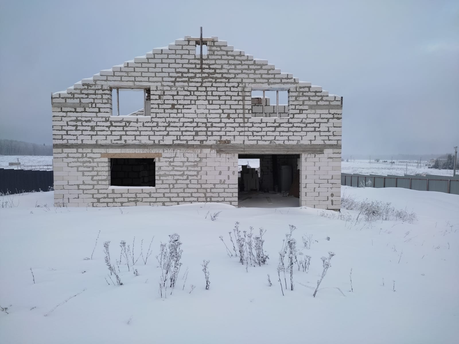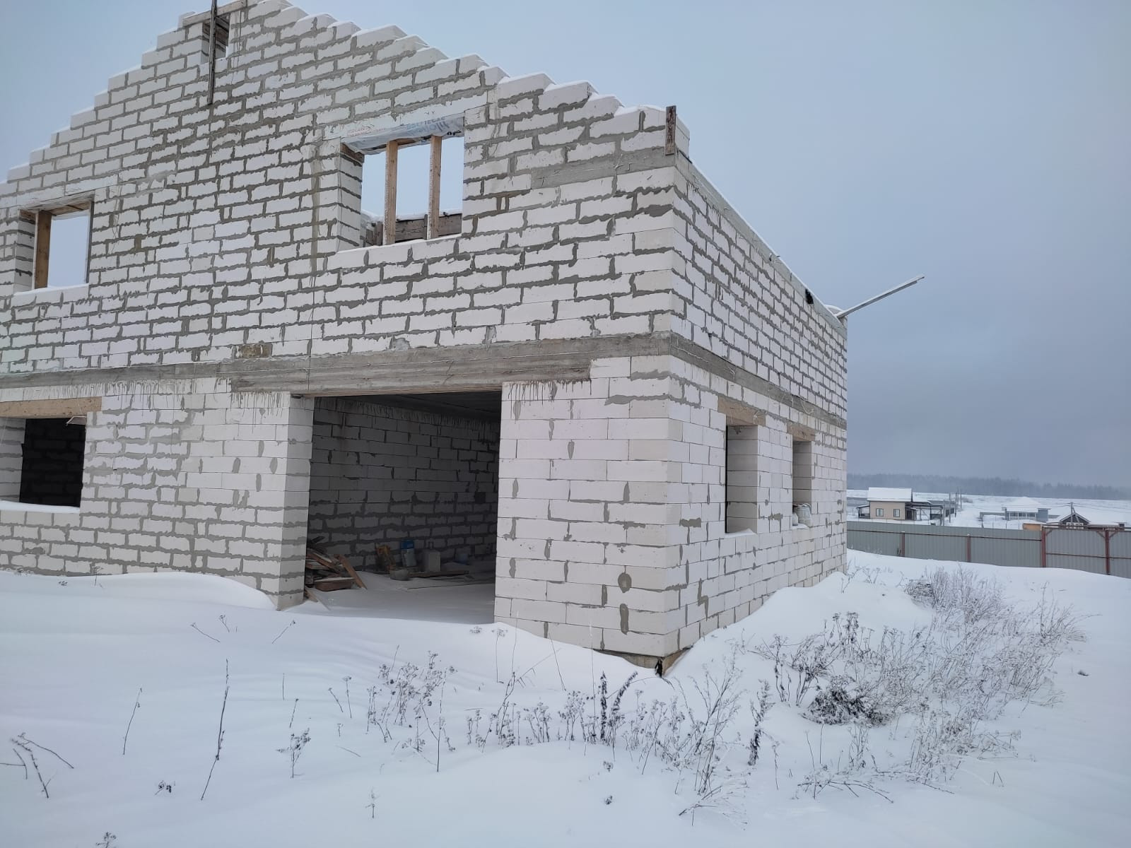 Дом: фундамент ж/б плита, между этажами ж/б перекрытие, стены 40 см. , между комнатами стены 20 см., лестница бетонная.