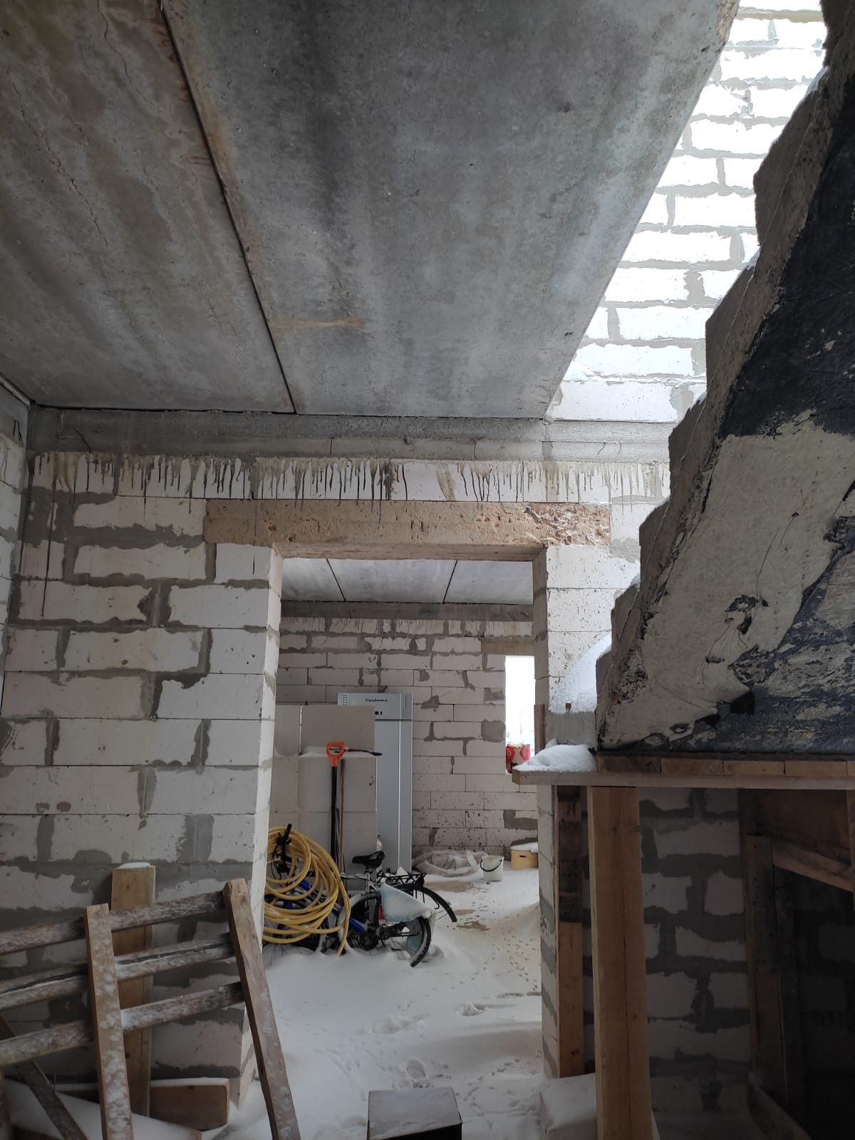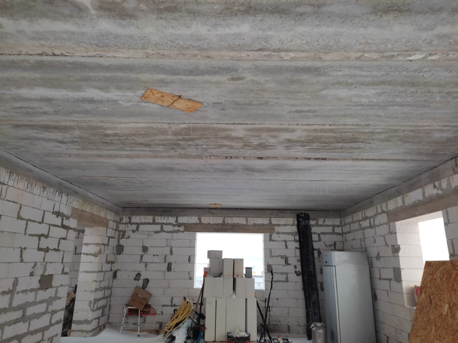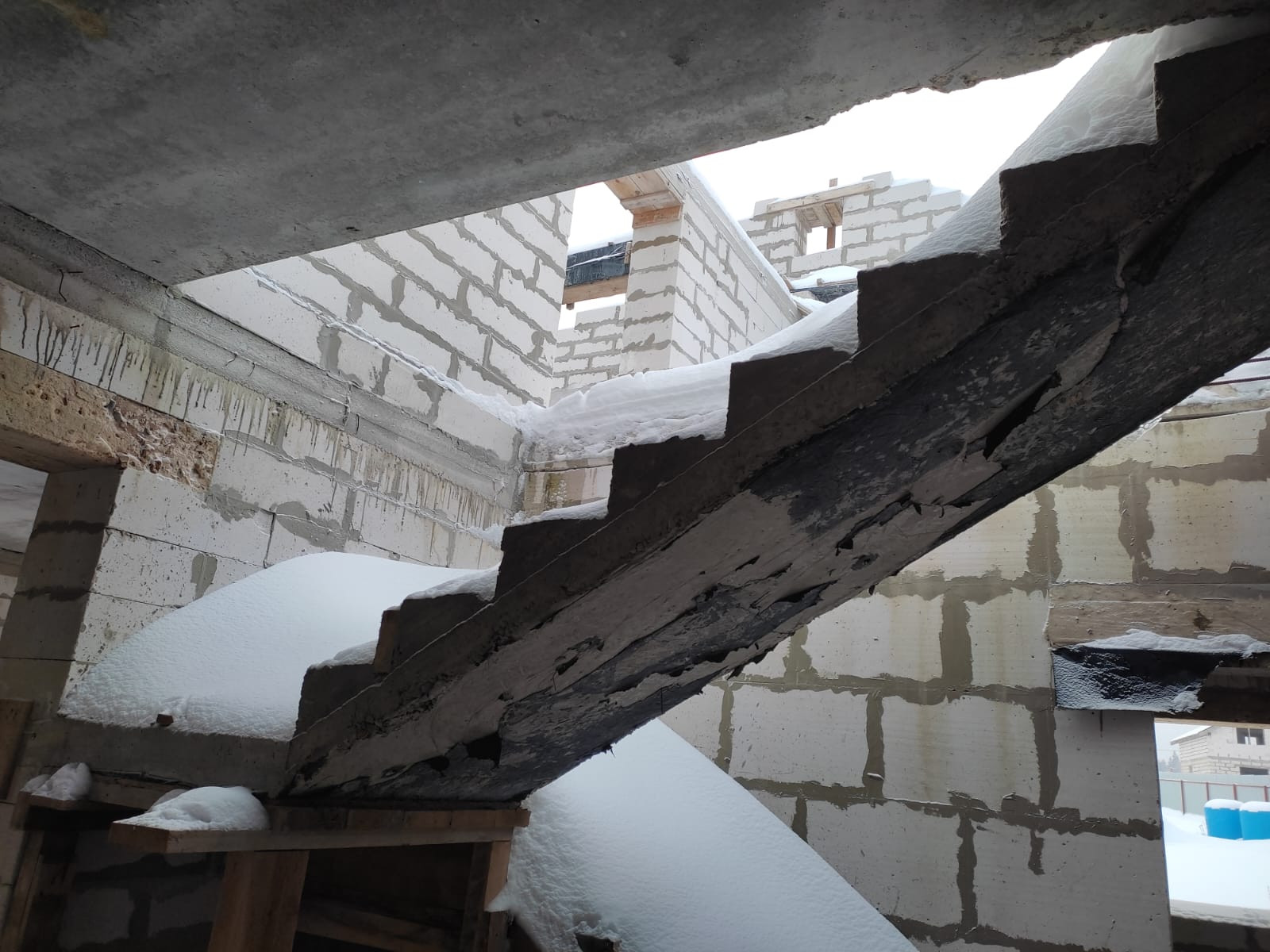 Дом: фундамент ж/б плита, между этажами ж/б перекрытие, стены 40 см. , между комнатами стены 20 см., лестница бетонная.