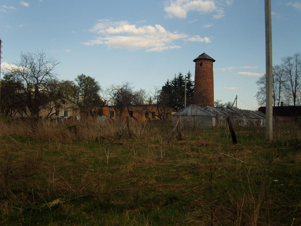 На участке водонапорная башня и ливнёвка.