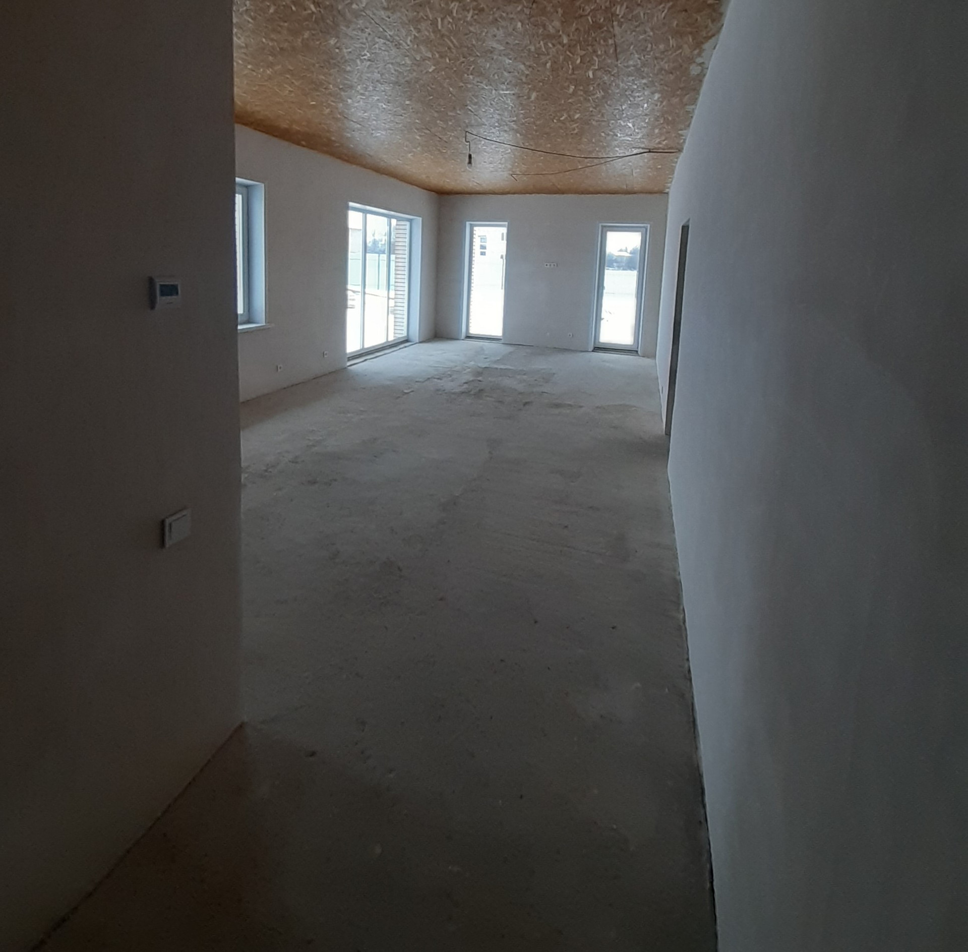 Стены оштукатурены. Выполнена предчистовая отделка.