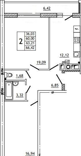 Общая площадь 66.3 м2