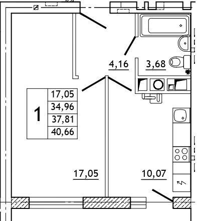 Общая площадь 40.9 м2