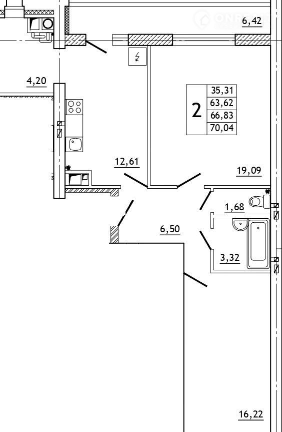 Общая площадь 70.5 м2