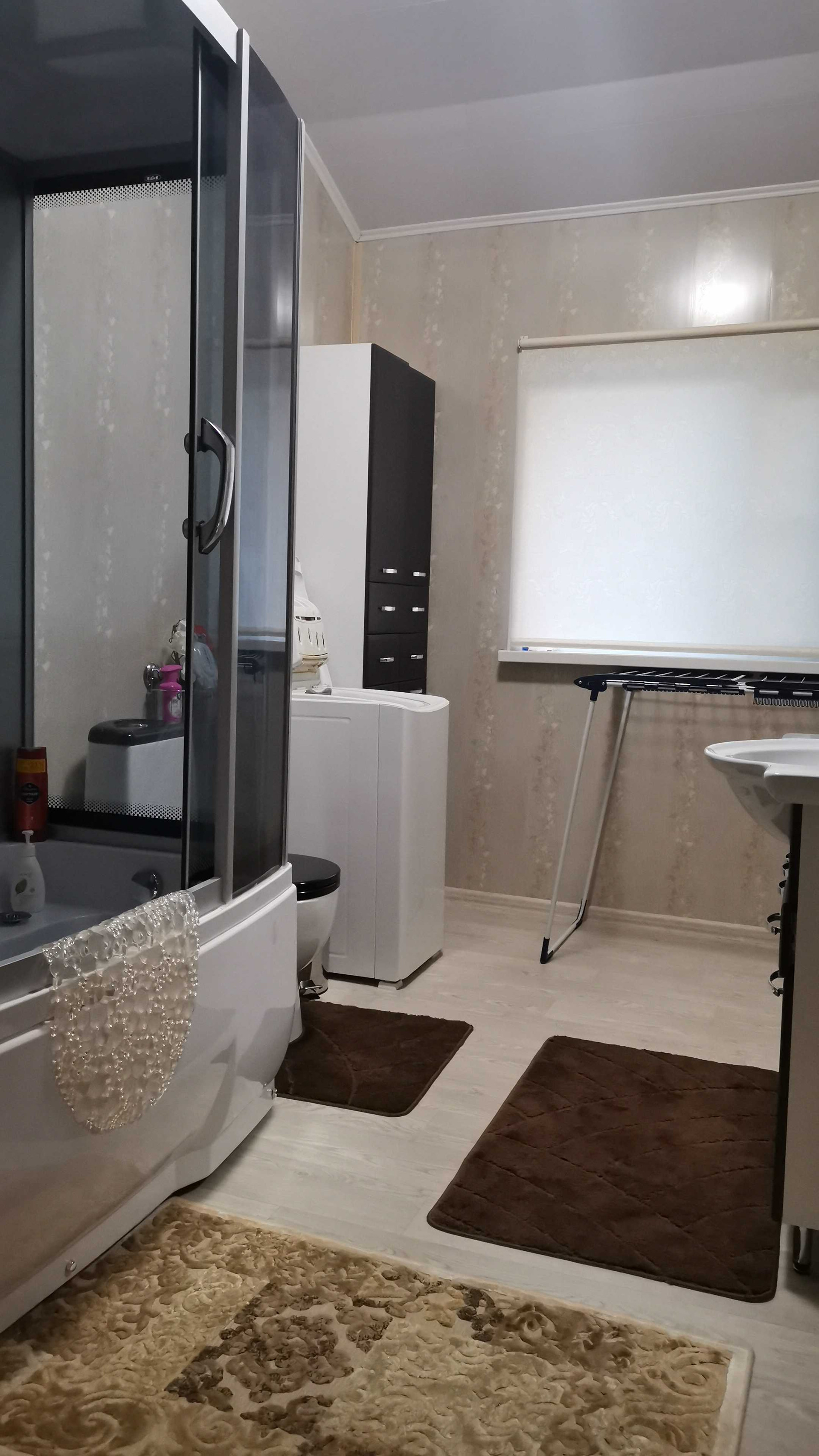 1 этаж: просторная гостиная-кухня(56 кв.м) со встроенной техникой.,2 спальни(18 и 12 м),просторная ванная с туалетом. 2 выхода на веранду(центральный вход) и террасу (вход в дом со двора),там же отдельный вход в болерную(котельную) где находиться все системы жизнеобеспечения дома).