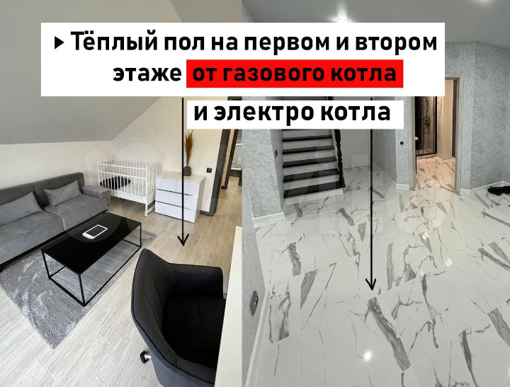- В доме на первом этаже , а также в с/у на втором этаже установлена система " Теплый пол "