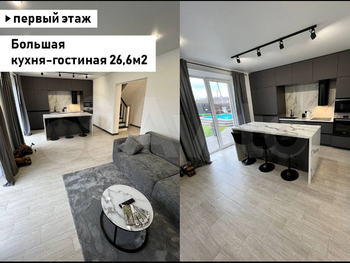 ✅ Кухня-гостинная с большими панорамными окнами от пола до потолка