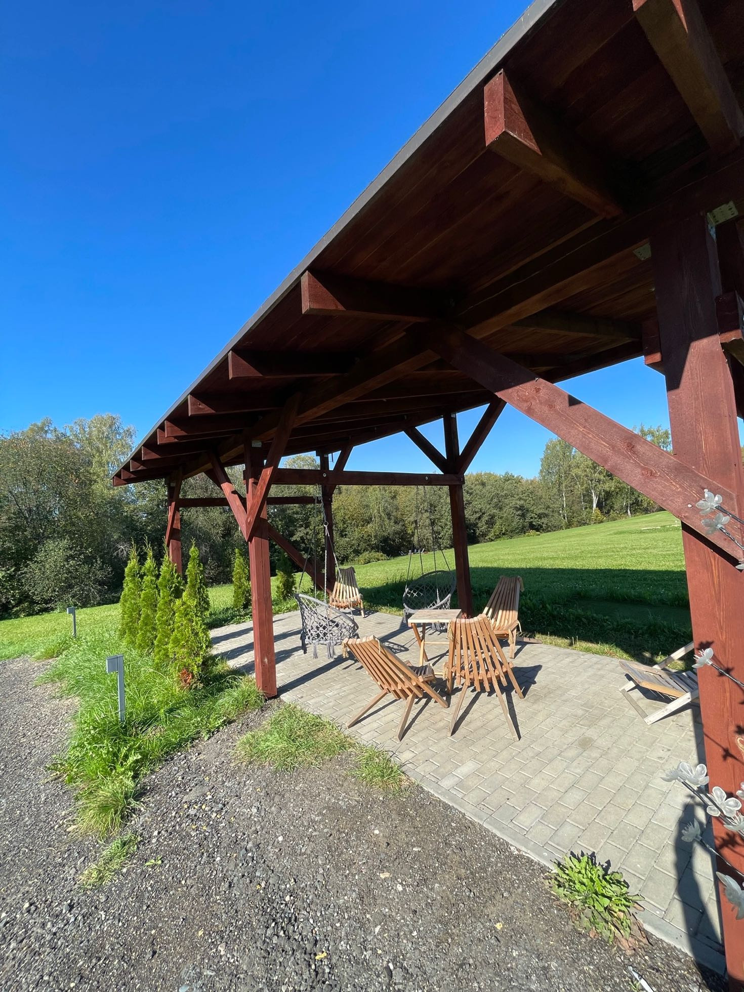 Живописное место до которого не далеко ехать (от города по трассе на машине ~12 минут, расстояние - 15 км). На территории коттеджного поселка имеется детская игровая площадка, зона отдыха для взрослых (беседка, костровая чаша), поле для гольфа♀️⛳️, купольное кафе☕️