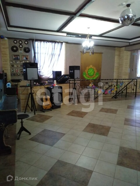 Первый дом расположен на первой линии федеральной трассы площадью 313 кв.м. - статус здания - жилое. Первый этаж приспособлен под магазин, площадь торгового зала 60 кв.м., подсобные помещения 30 кв.м. и санузел.На втором этаже расположен банкетный зал площадью 160 кв.м., способный принять до 50 гостей.Установлена профессиональная аппаратура, мебель из массива дерева, продуманы светоэффекты.