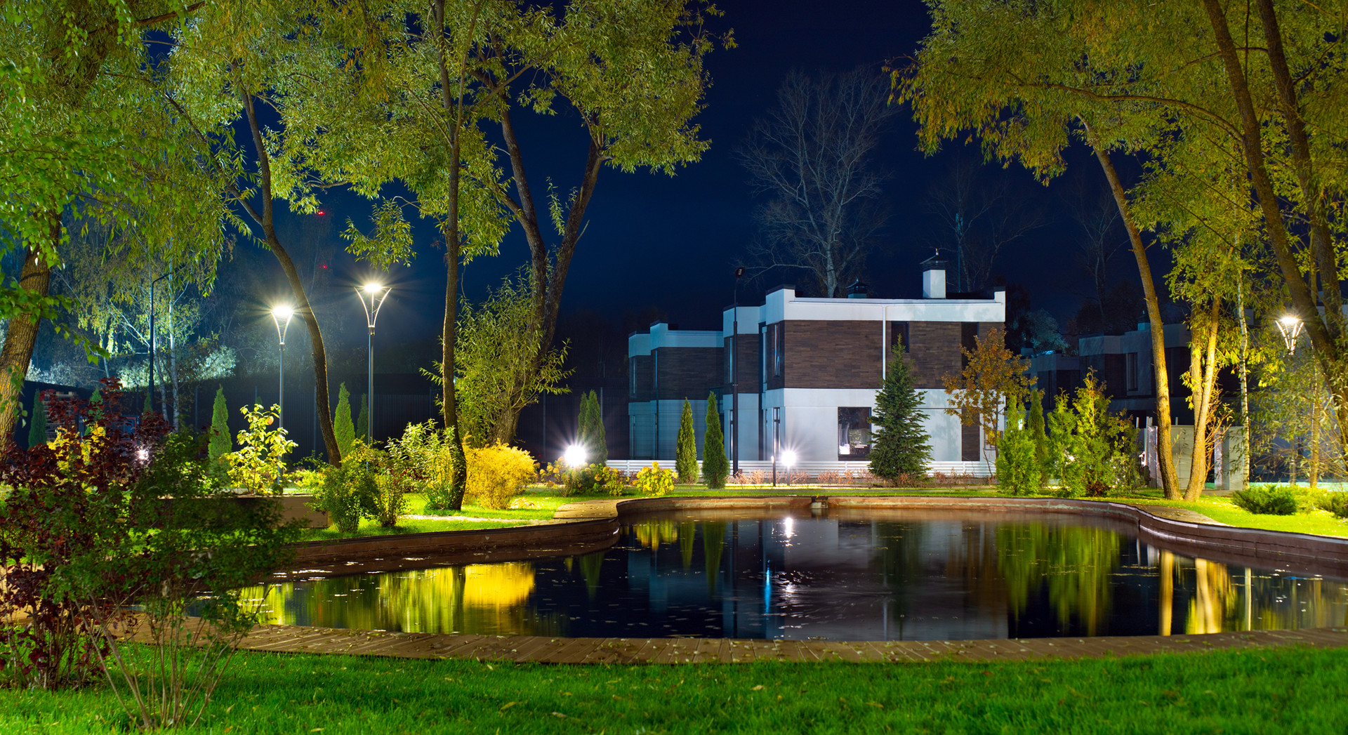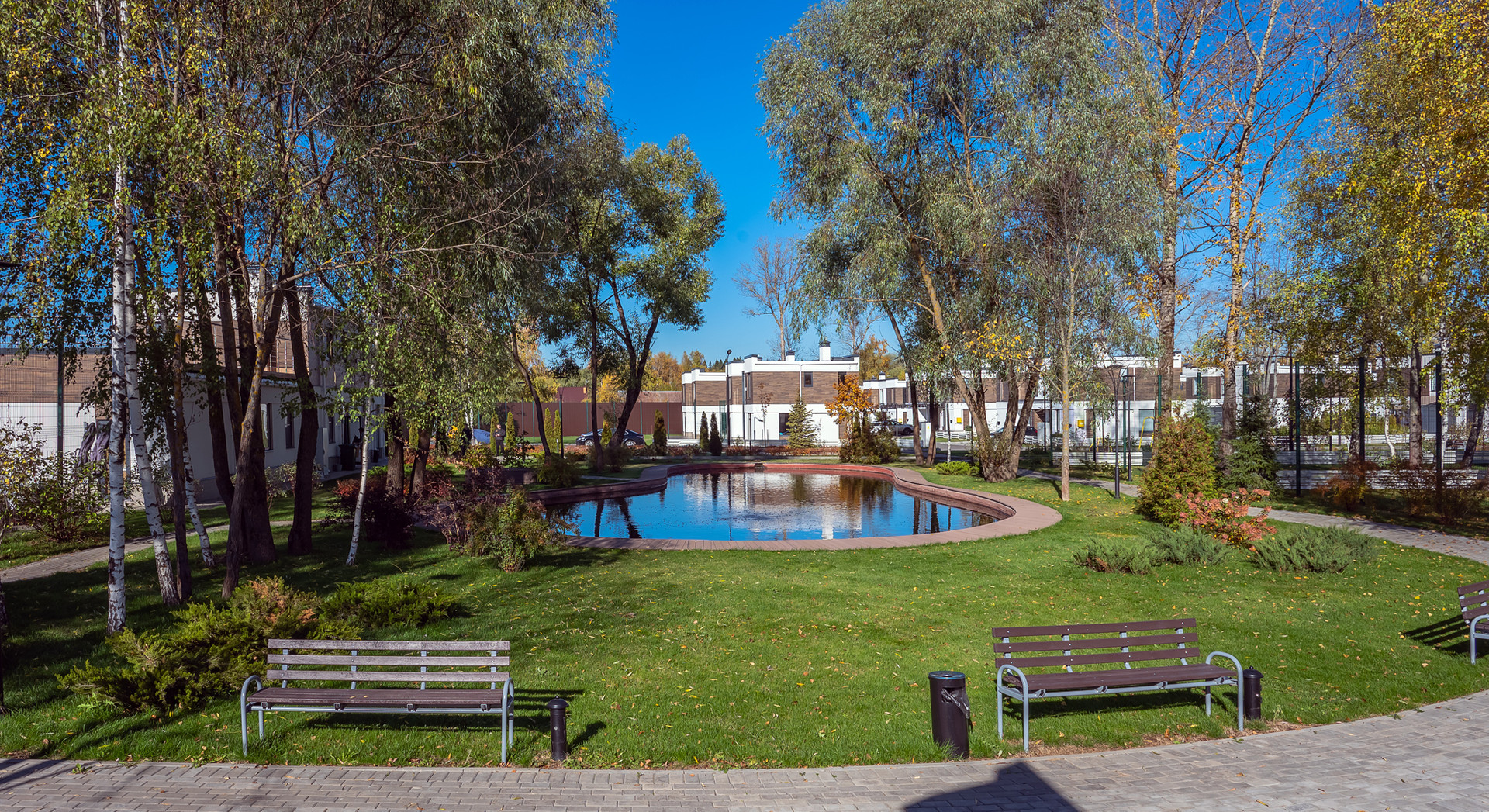 Благоустроенный водоем и парковая зона.