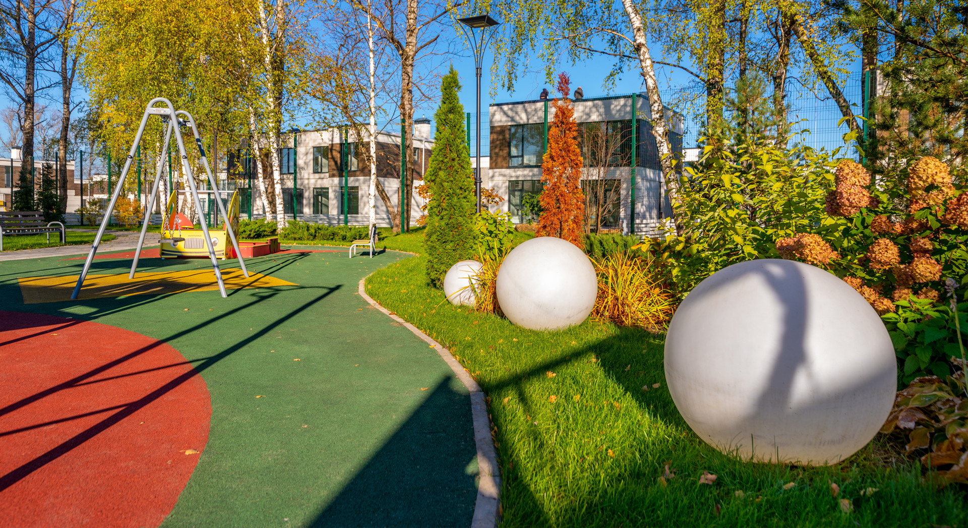 Широкие аллеи, парковый массив, детские и спортивные площадки, кафе, магазин все это создает отличные условия для комфортного отдыха или постоянного проживания за городом.