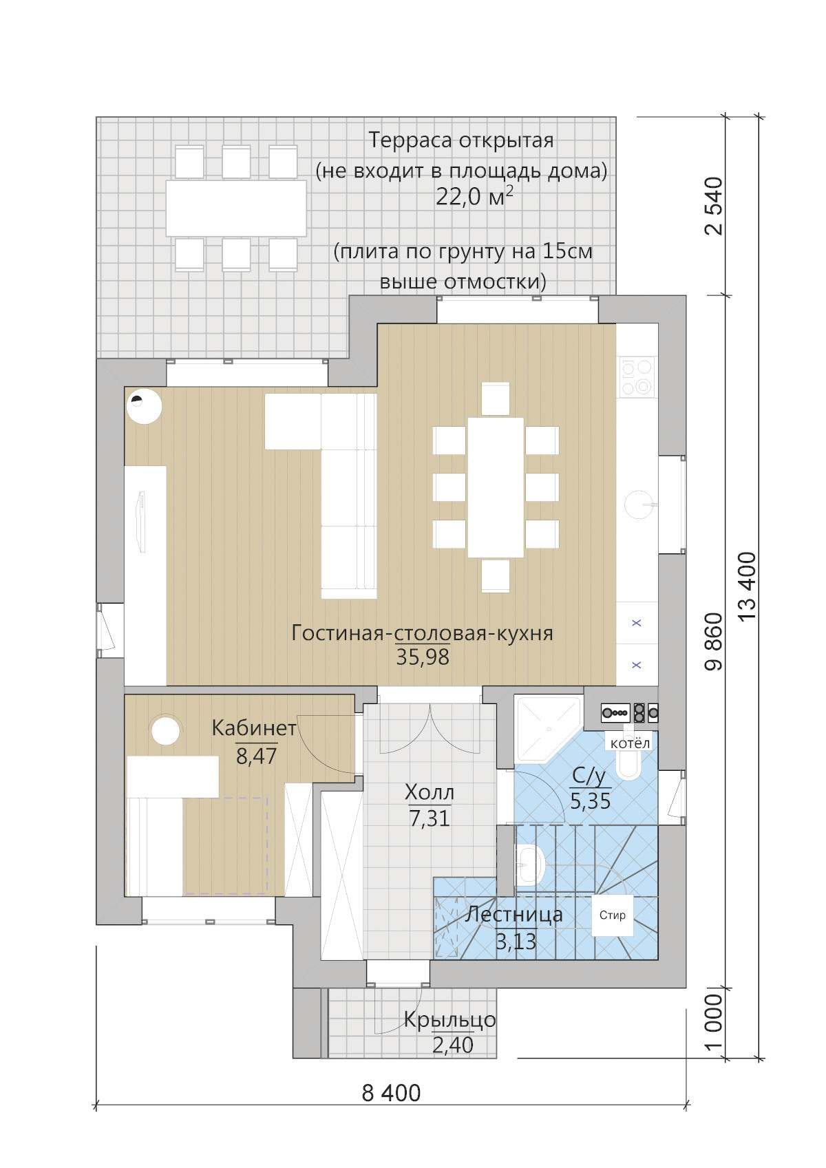 · Парковочное место и открытая терраса;