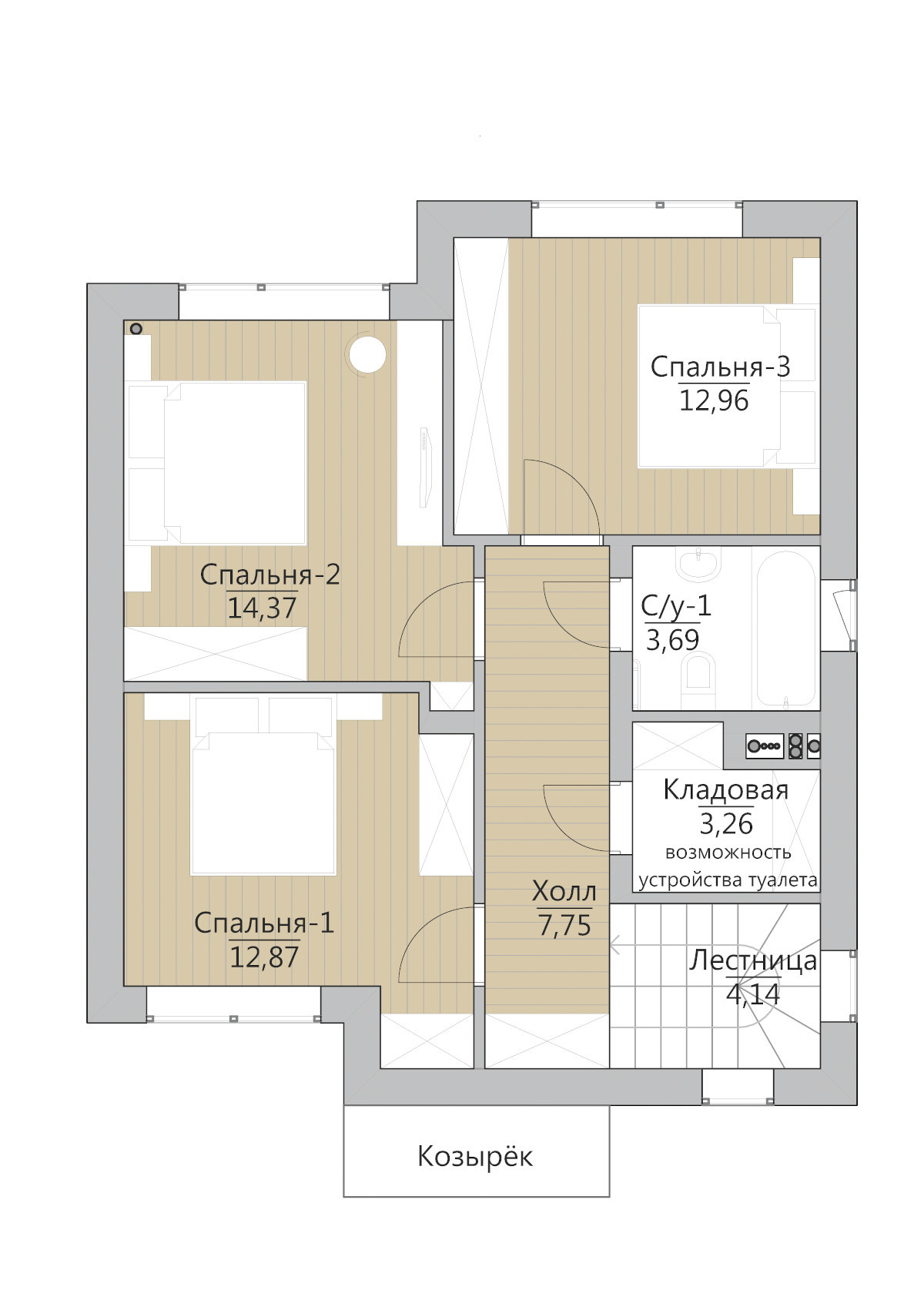 · Три спальни;
