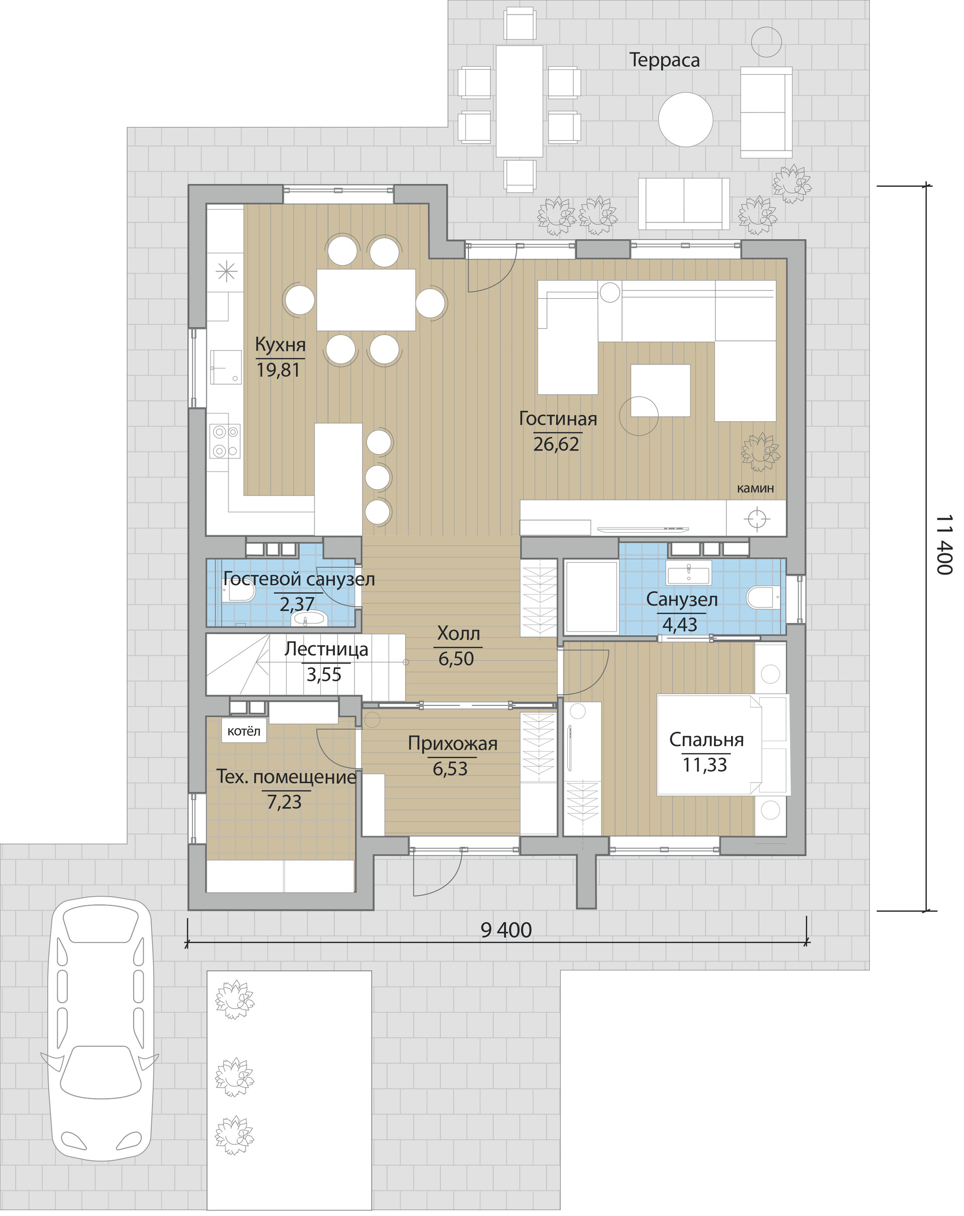· Парковочное место и терраса.