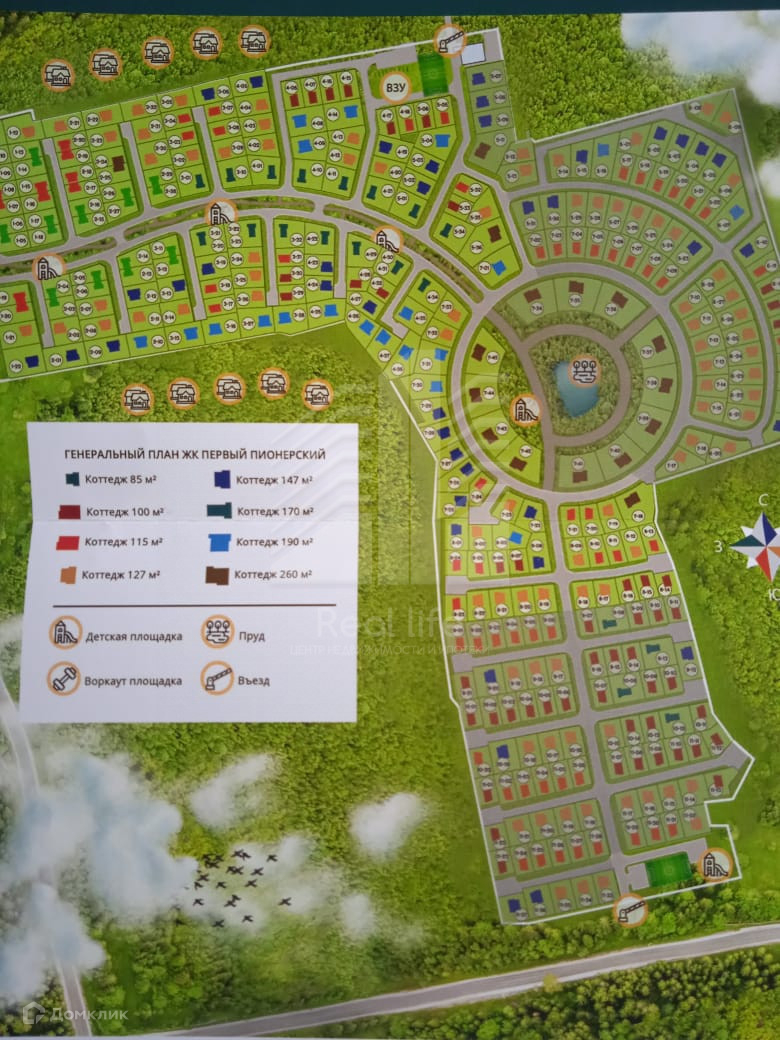 Поселок находится в окружении леса, своя охраняемая территория. Есть магазины, детские и спортивные площадки, зона для прогулок, благоустроенный водоем и парковая зона, парковки для гостей. За всем этим следит своя управляющая компания.
