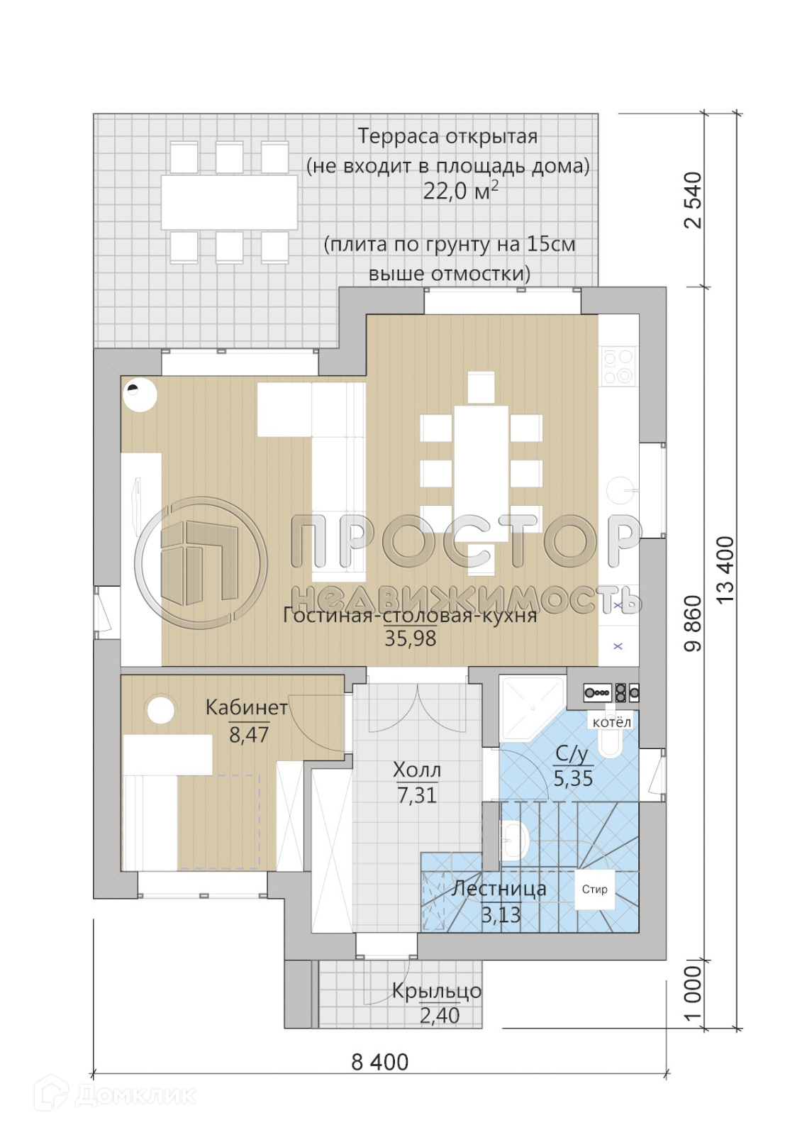 Уютный интерьер и техническое оснащение: Дом выполнен в современном стиле, который гармонично сочетается с окружающей природой. Интерьер наполнен светом и воздухом, благодаря большим окнам и панорамным дверям.