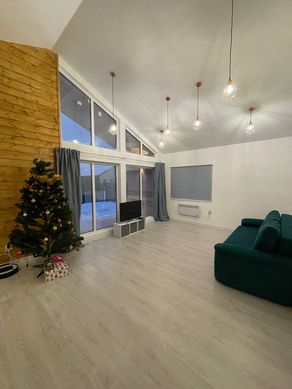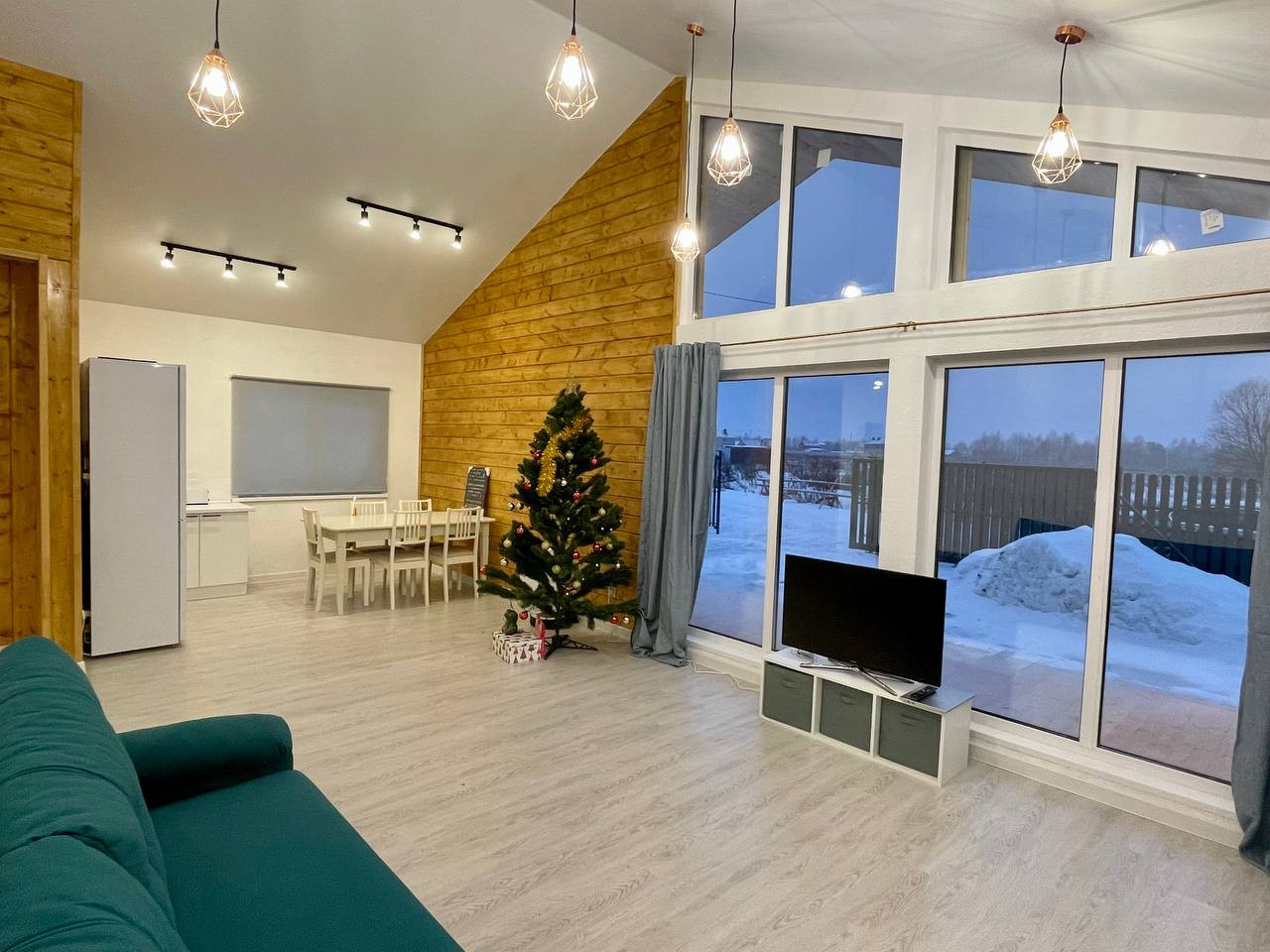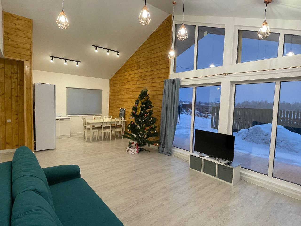 В доме продуманная и удобная планировка.Большая кухня-гостинная 33 кв в с панорамным остеклением,3 изолированные комнаты 17,6 кв м,12 кв м и 12 кв м,совмещенный санузел с душевой кабиной,прихожая.
