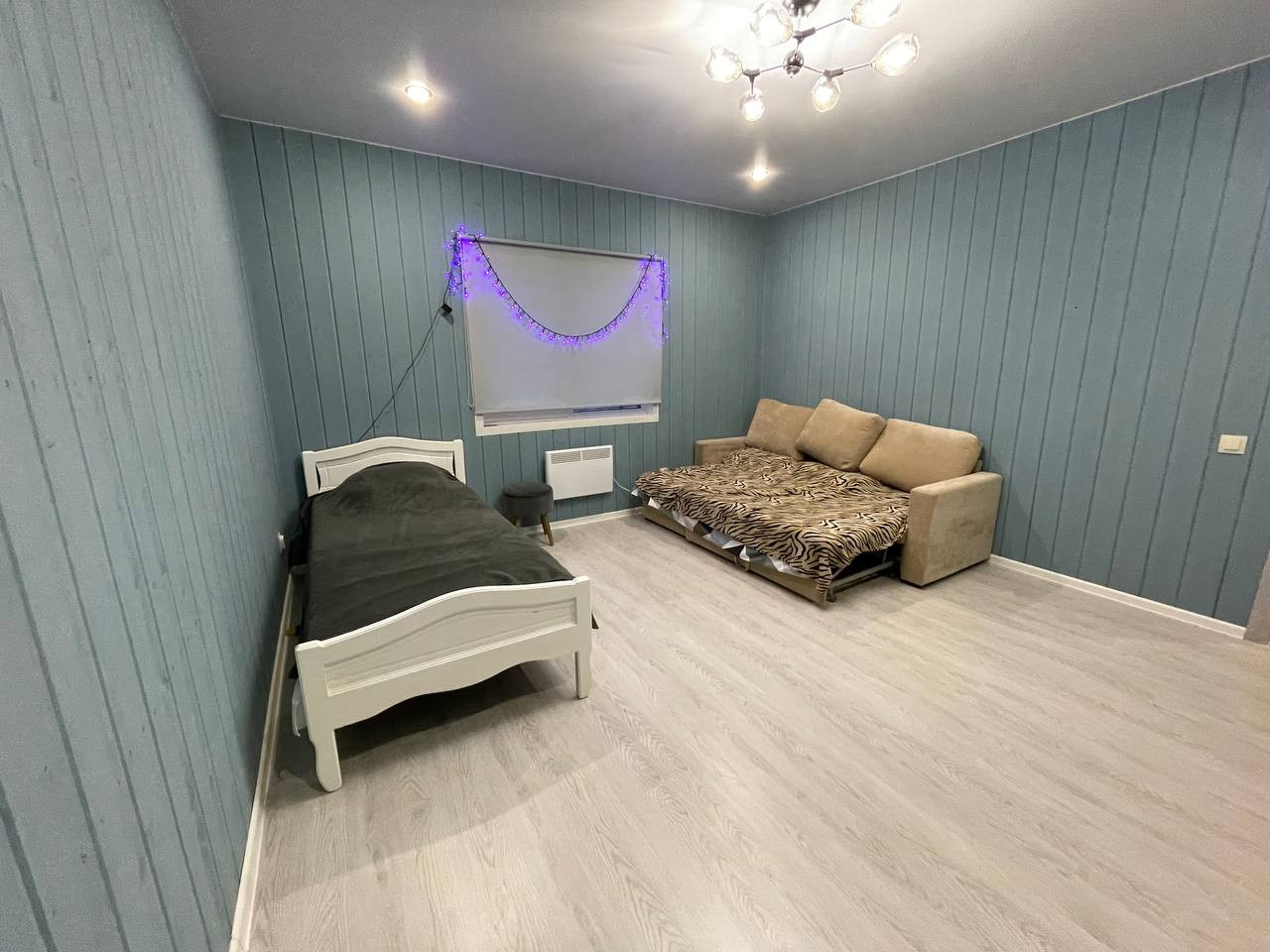Пластиковые двухкамерные окна, на полу ламинат. Остается вся мебель.