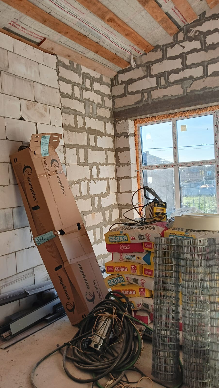 •Стены - газосиликатный блок + утепление 200 мм