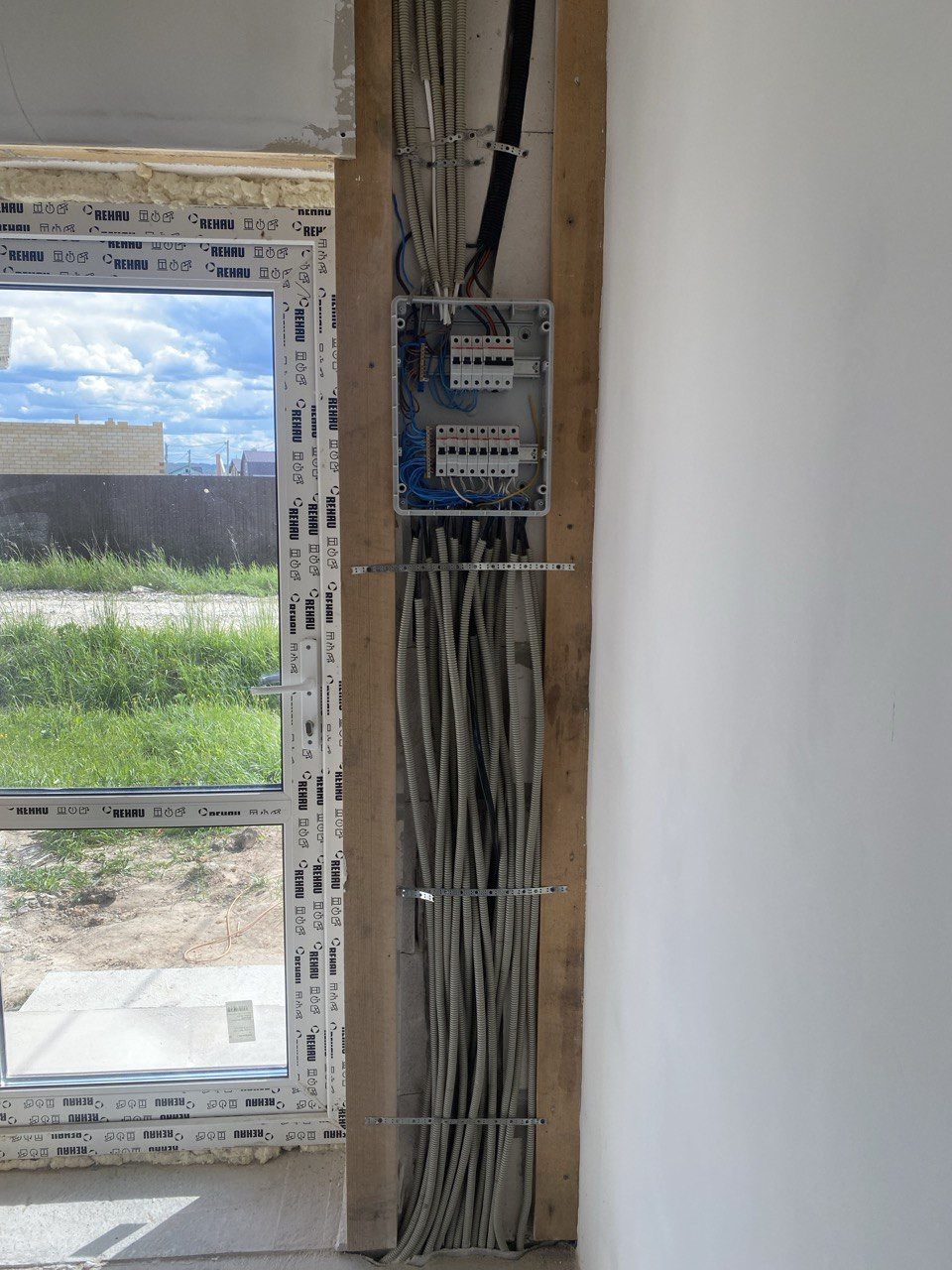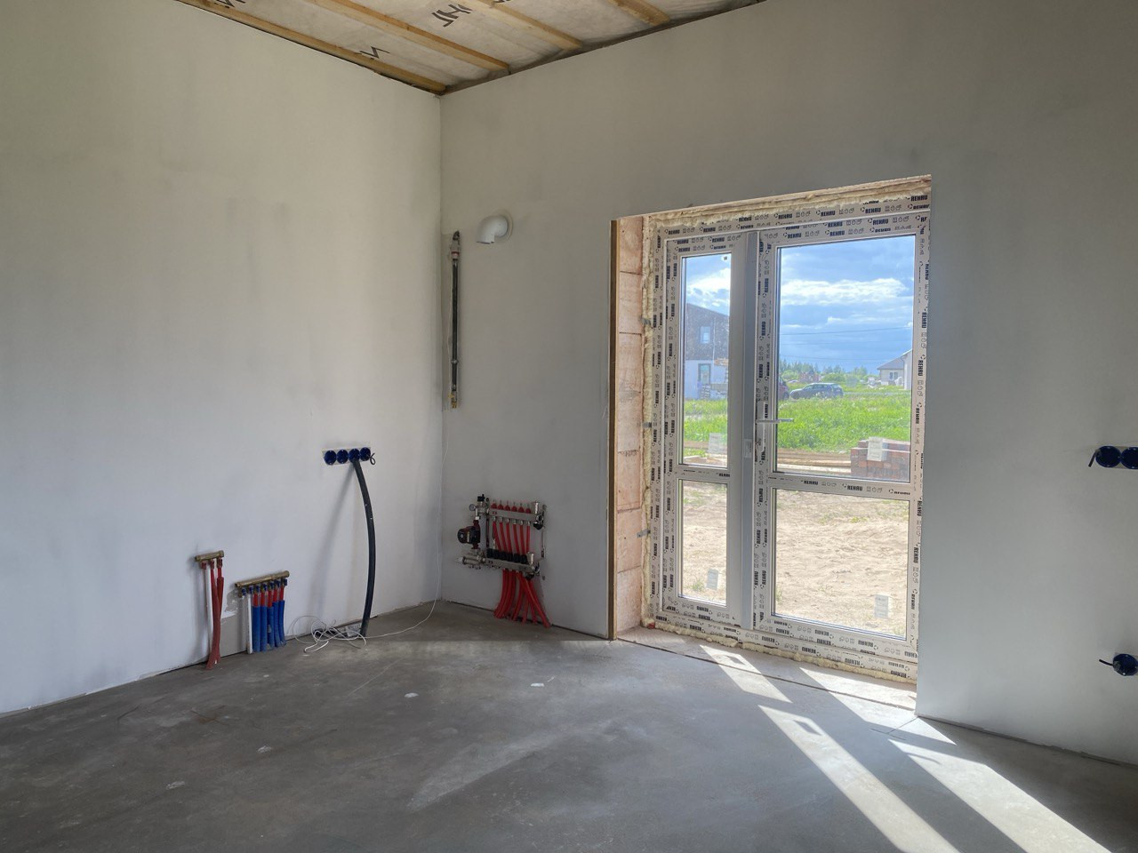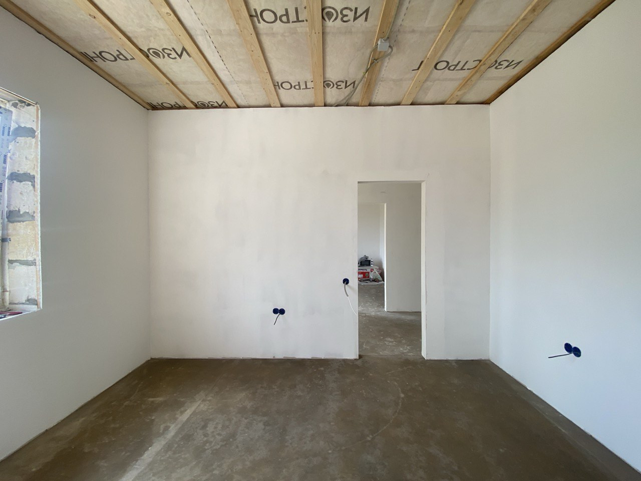 Отделка WHITE BOX (сделана полусухая стяжка пола, стены выровнены "под маяк", разводка электрики).
