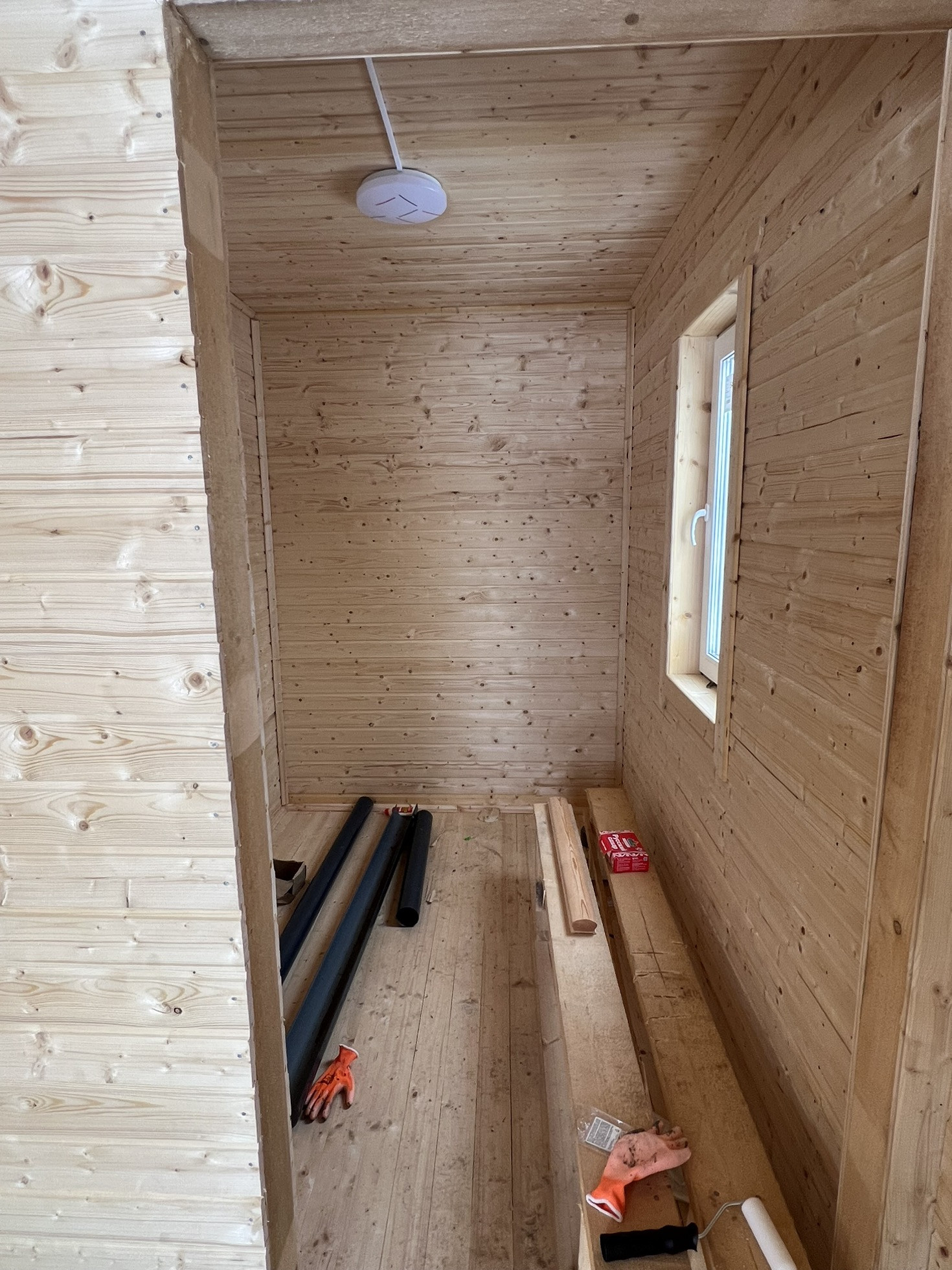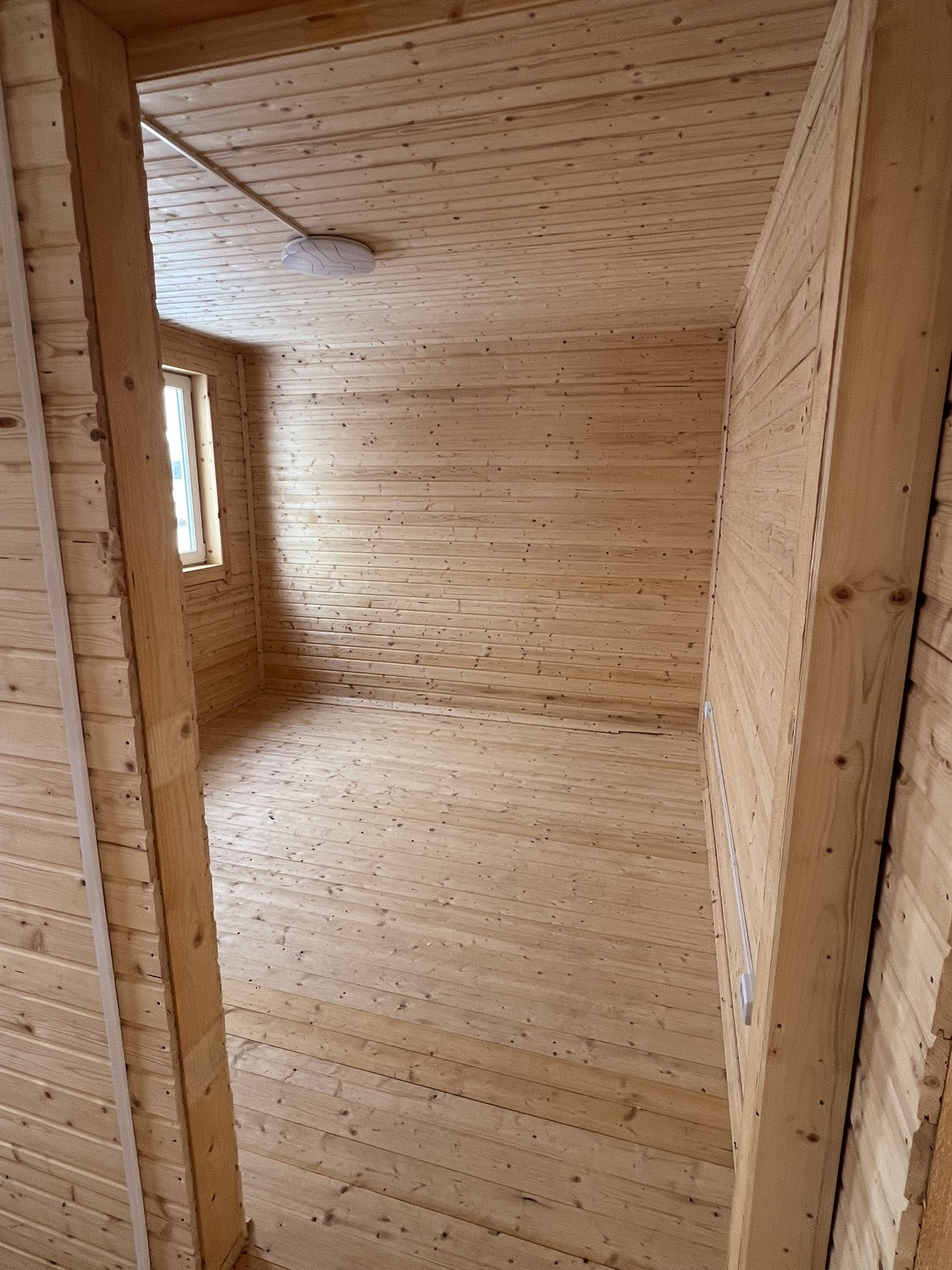 Двухэтажный. На первом этаже: кухня- гостиная 28 м2, с/у 5 м2 совмещённый, прихожая 3 м2.