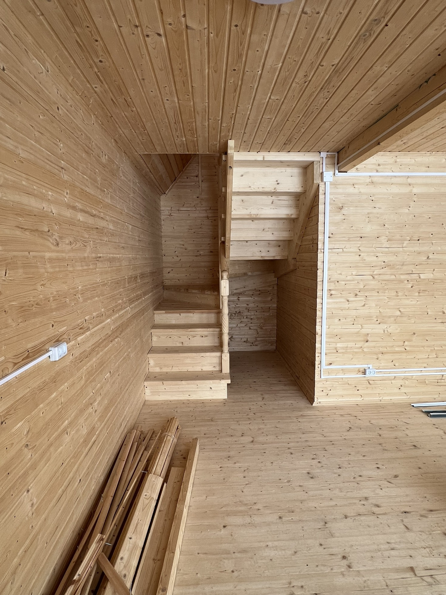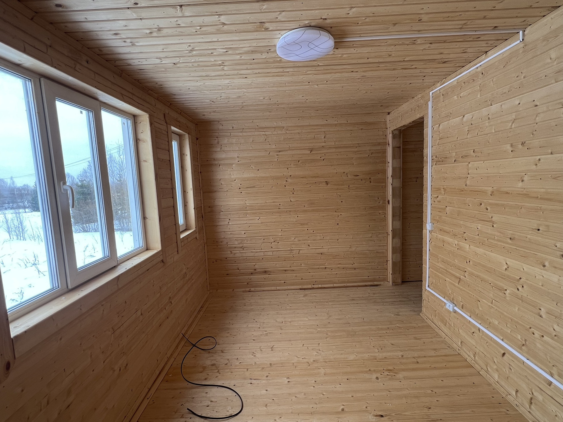 По всему дому произведена разводка электричества.