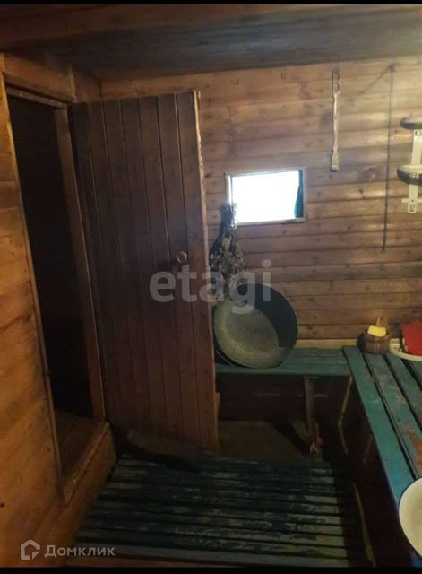 Дом: на 1-м этаже тёплая комната с печкой, летняя комнатка и кухня, застеклённая веранда и баня. На 2-м этаже две комнаты.