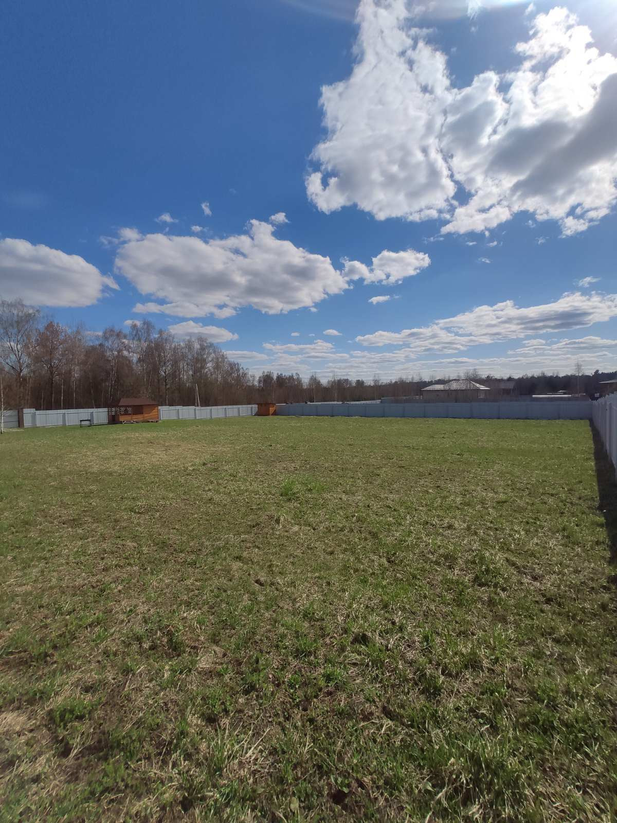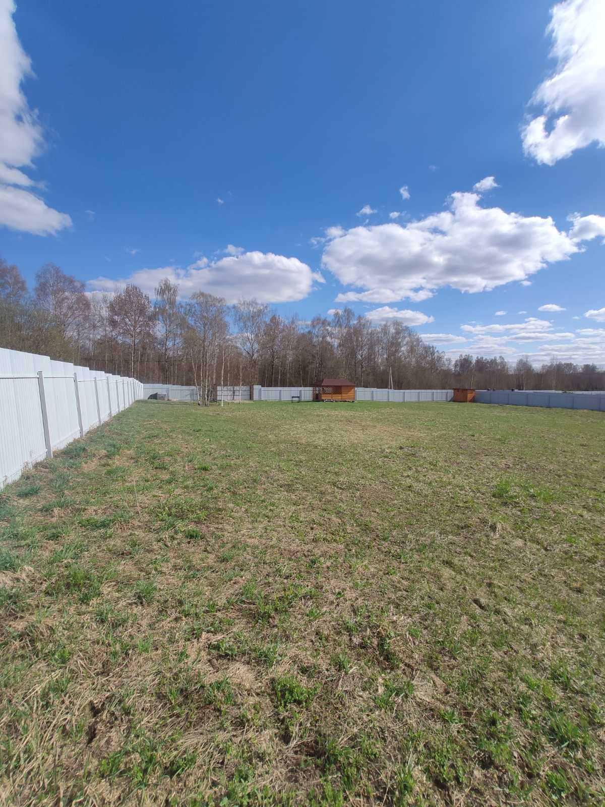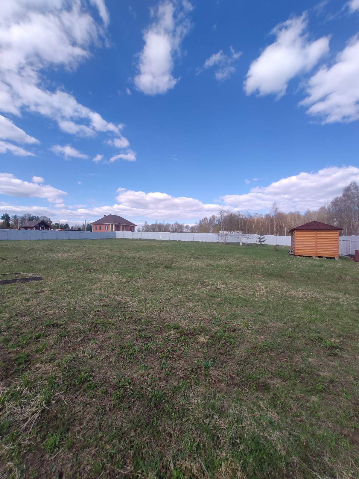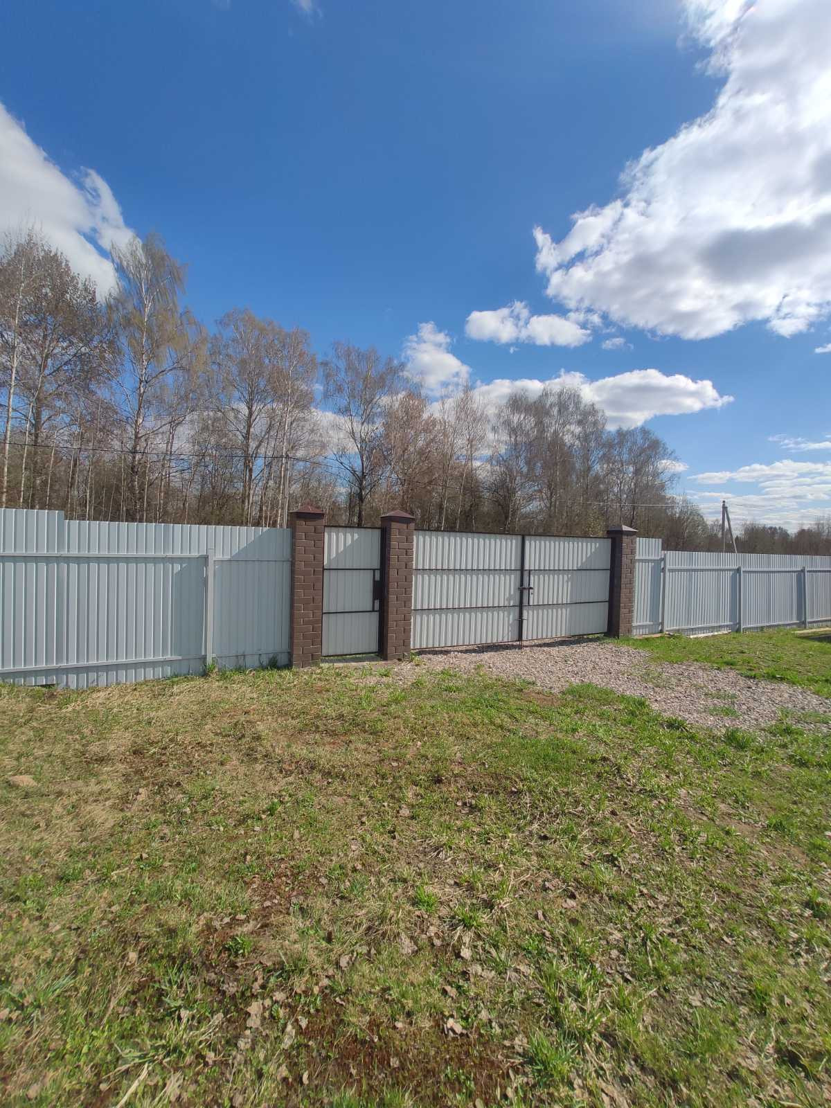 Полностью обнесен забором , с воротами и калиткой!
