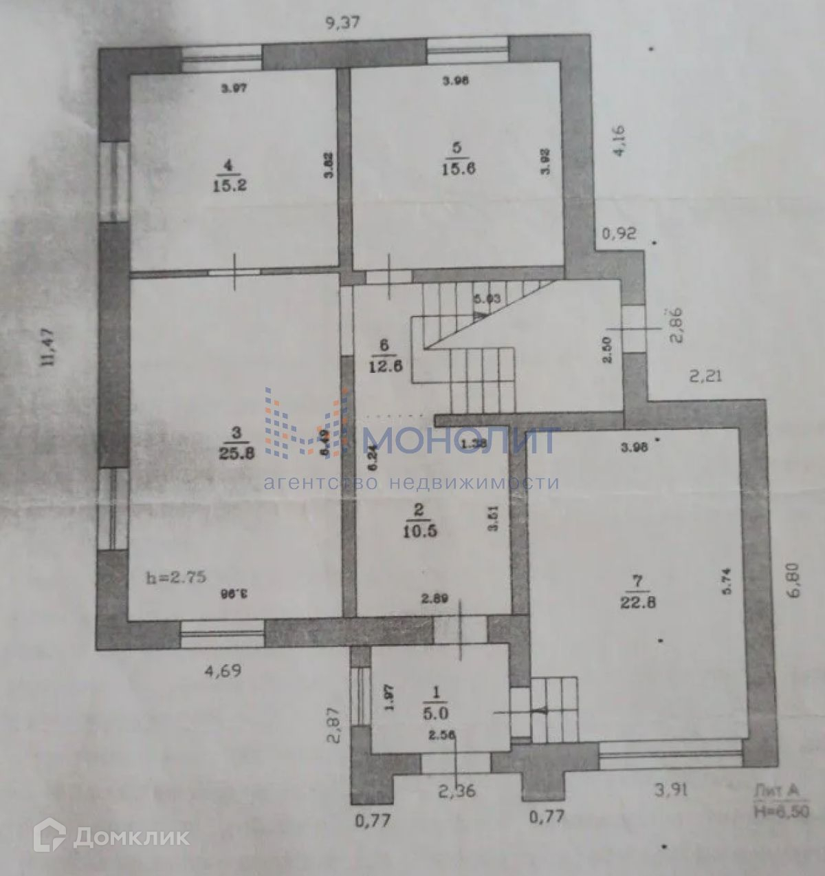 Перекрытия и лестницы бетонные, Стены ровные.