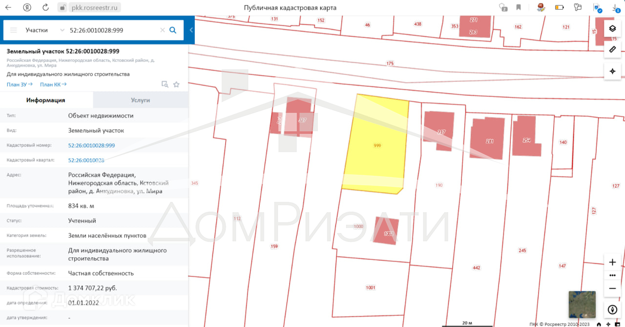 Кадастровый номер земельного участка 52:26:0010028:999