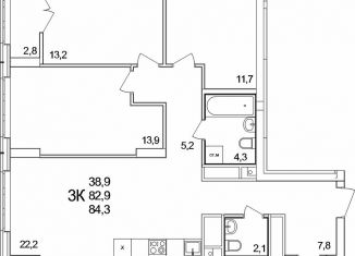 Продажа 3-комнатной квартиры, 84.3 м2
