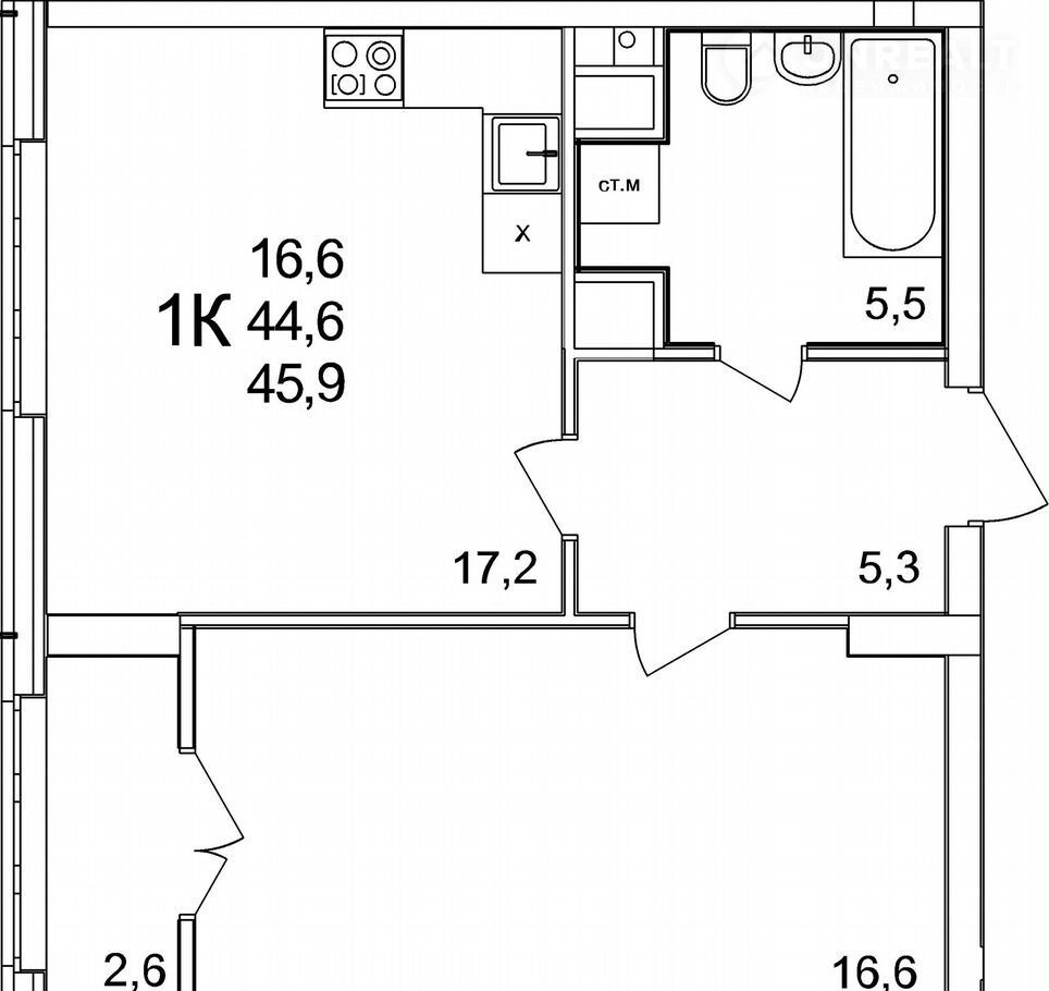 Общая площадь 45.9 м2