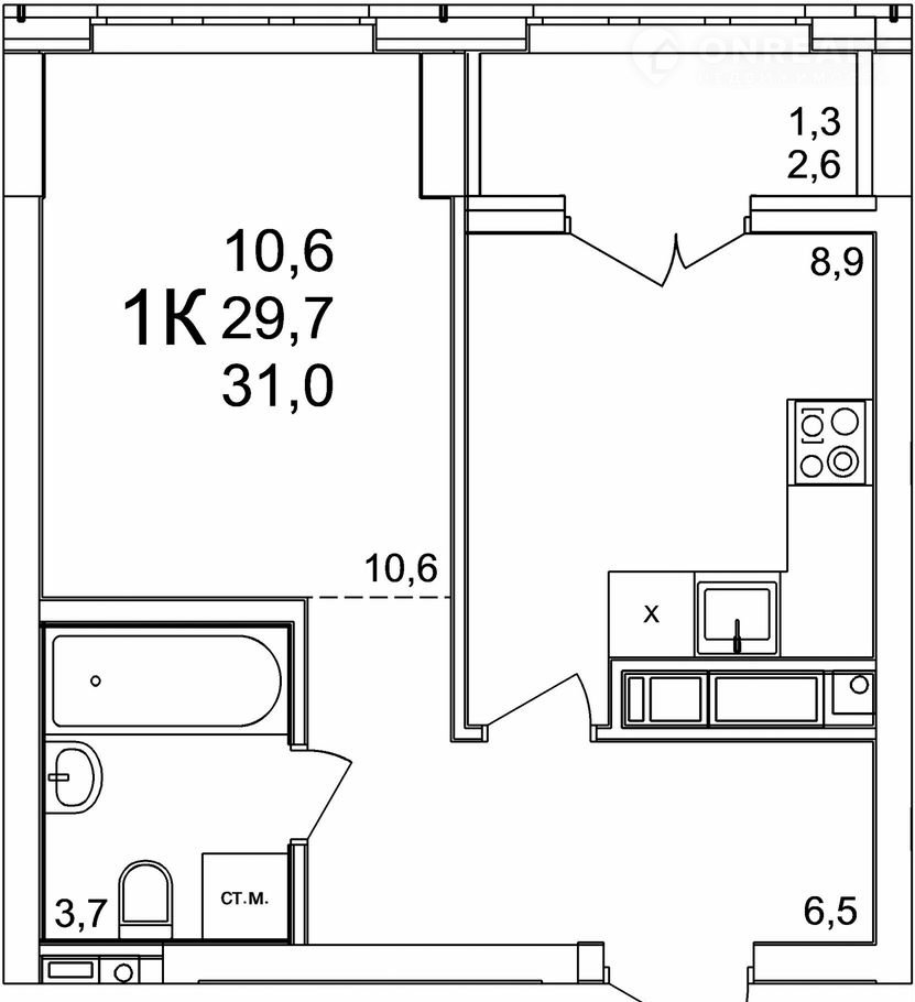 Общая площадь 31 м2