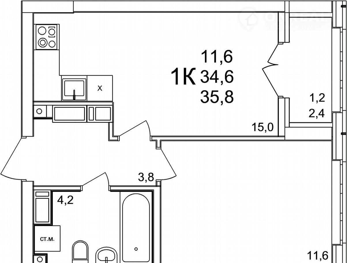 Общая площадь 35.8 м2