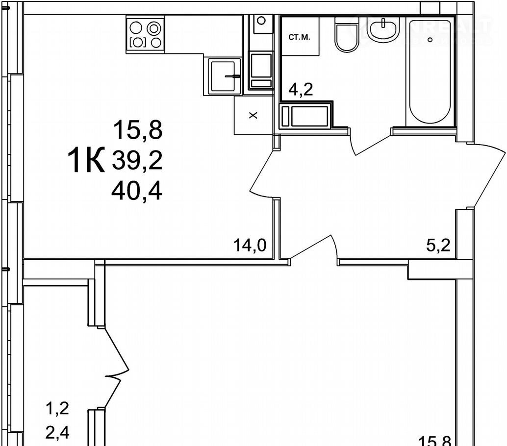Общая площадь 40.4 м2